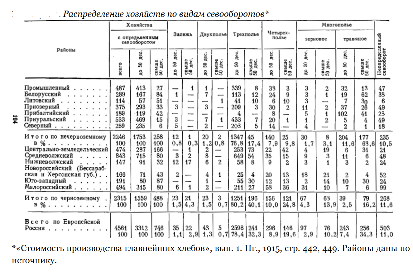 Распространение многопольного севооборота в помешичьих и крестьянских хозяйствах