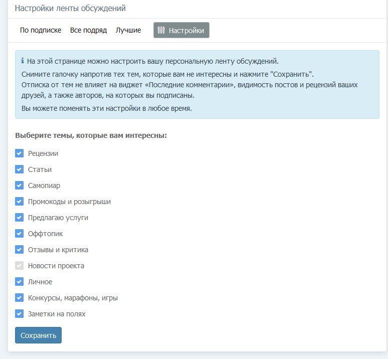 Поэтому резко-негативные комменты в идут во вред целям этого блога. Если факт появления "нового" автора вас не заинтересовал - не переходите по ссылке. Если не зашли книги - ну, бывает, но не нужно ему мешать обосноваться на АТ. Ему и так будет сложно ближайшие недели. В дальнейшем будут и другие блоги такого рода, на АТ планируют переехать ещё несколько литнетовских авторов. Если вам это не интересно и раздражают "рекламные" оповещения, то можно настроить фильтр и отключить все лишнее, сняв галочки.