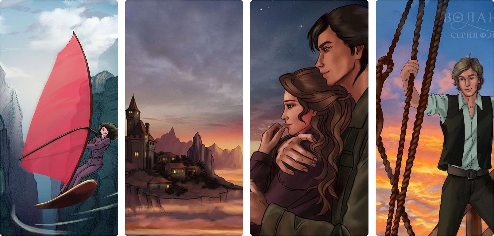 Иногда делала бытовые зарисовки в мире летающих островов. Одну из них мы даже напечатали в виде открытки.