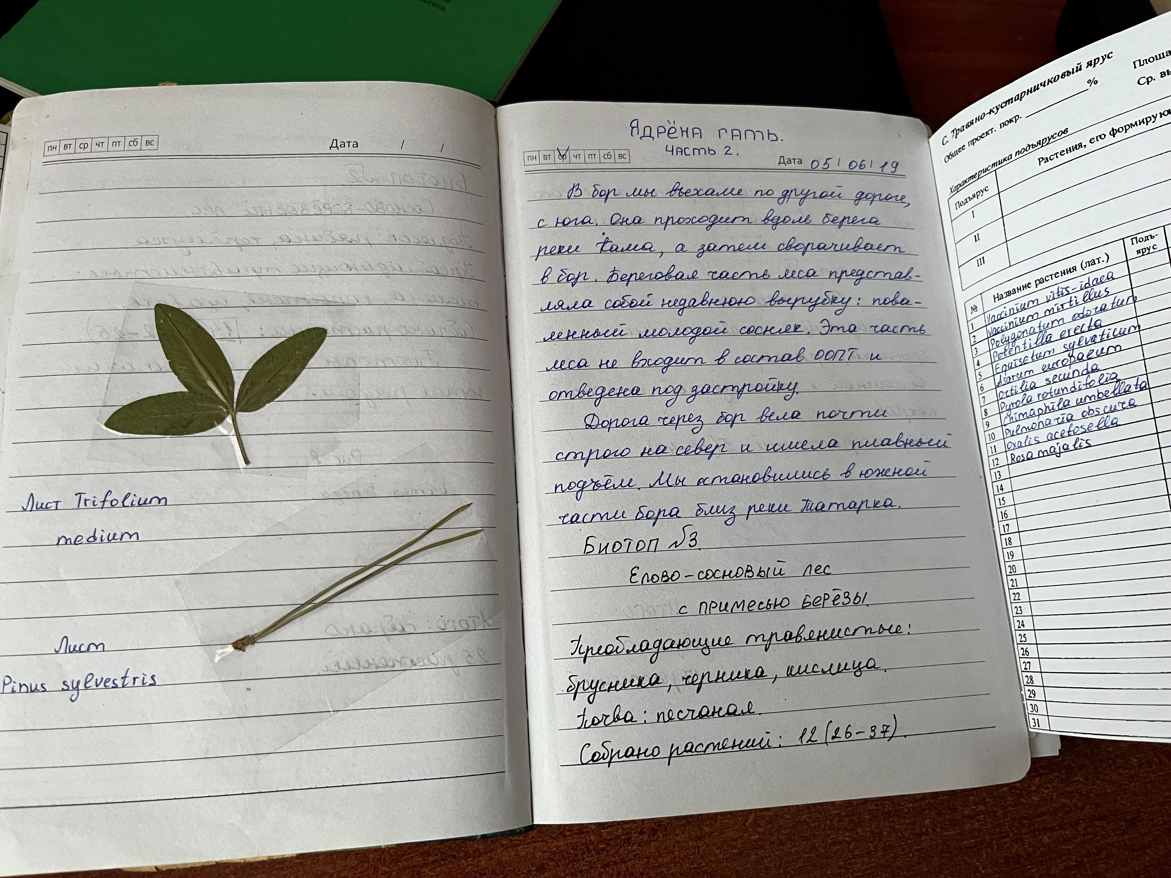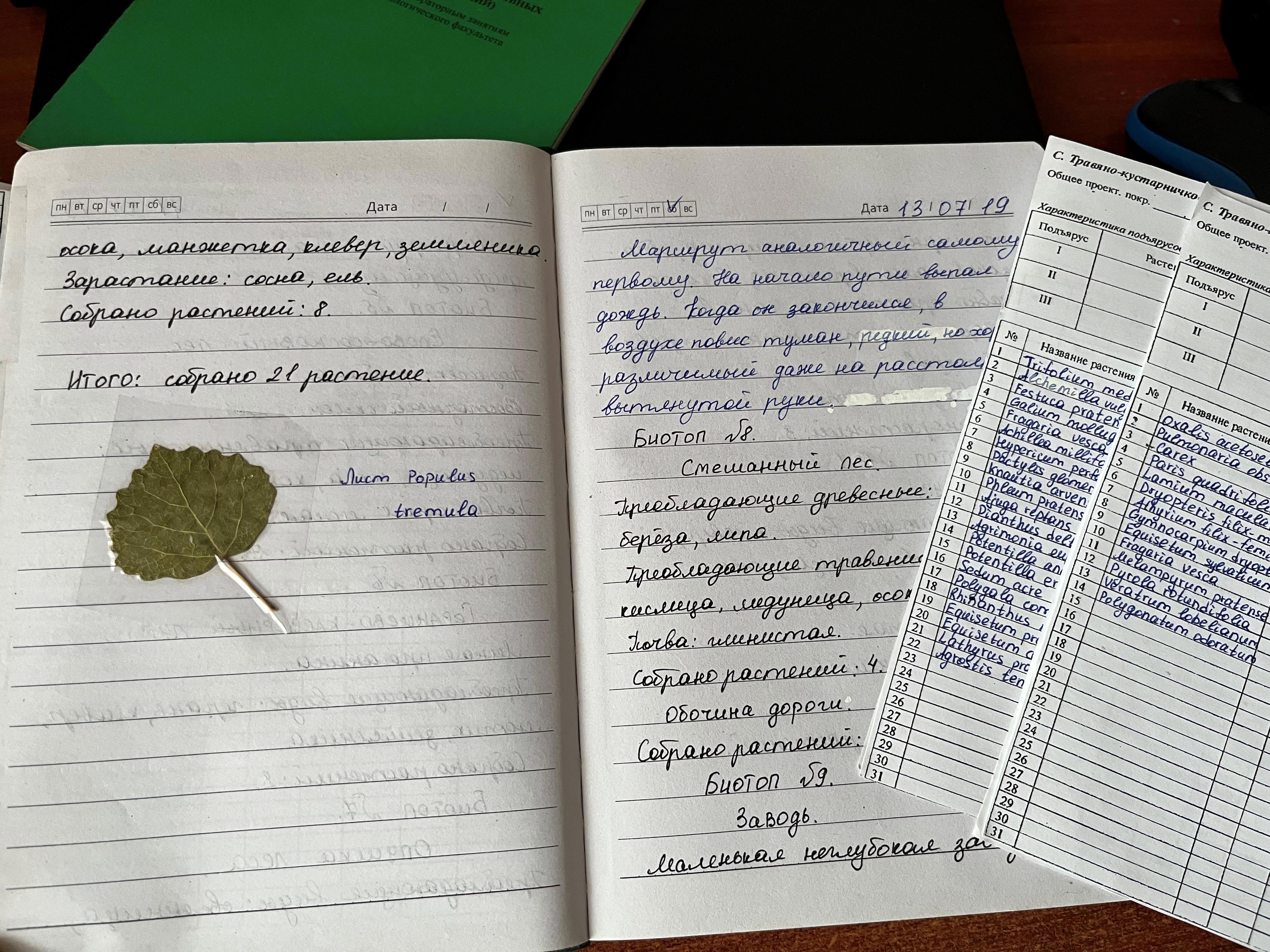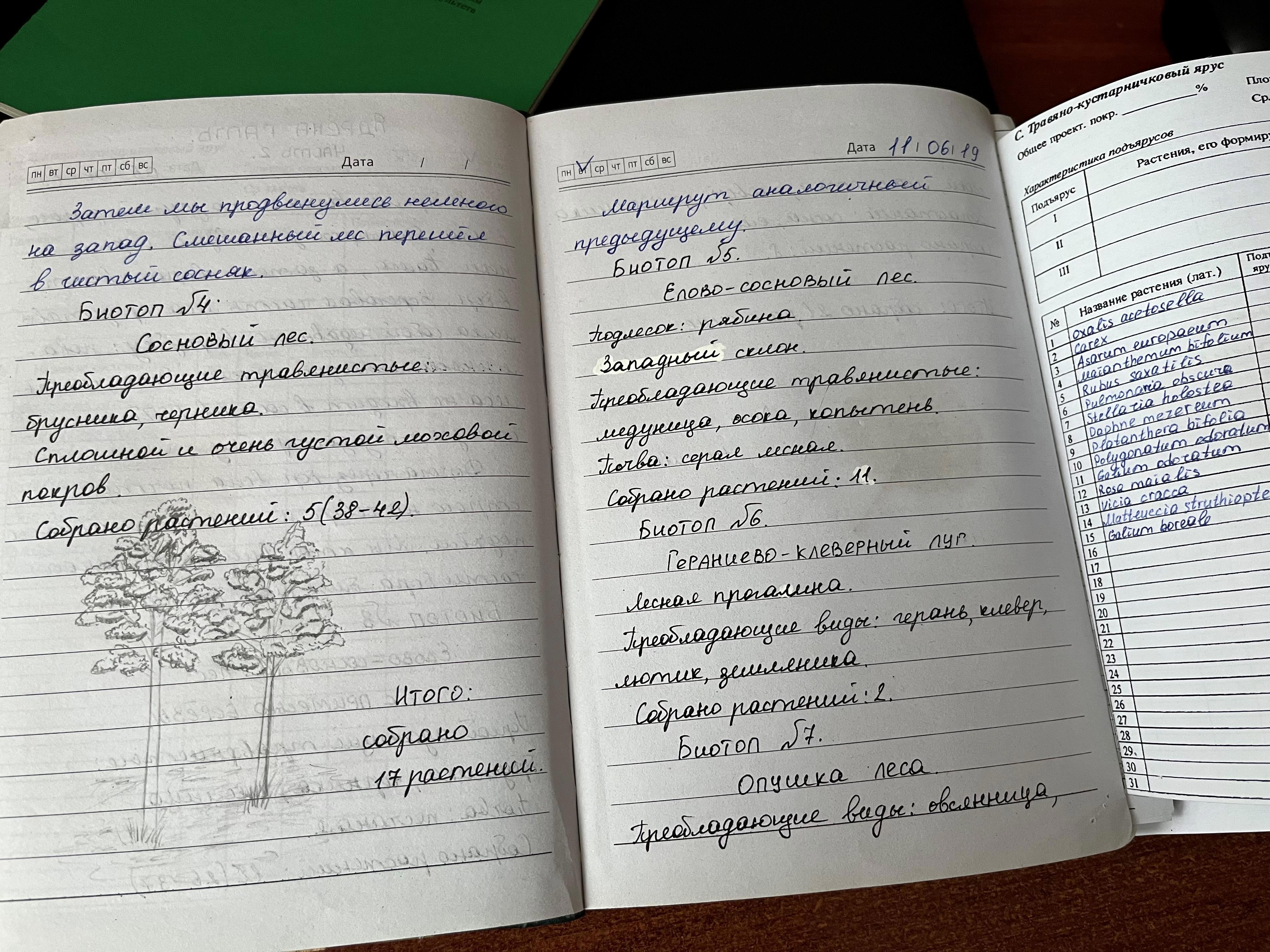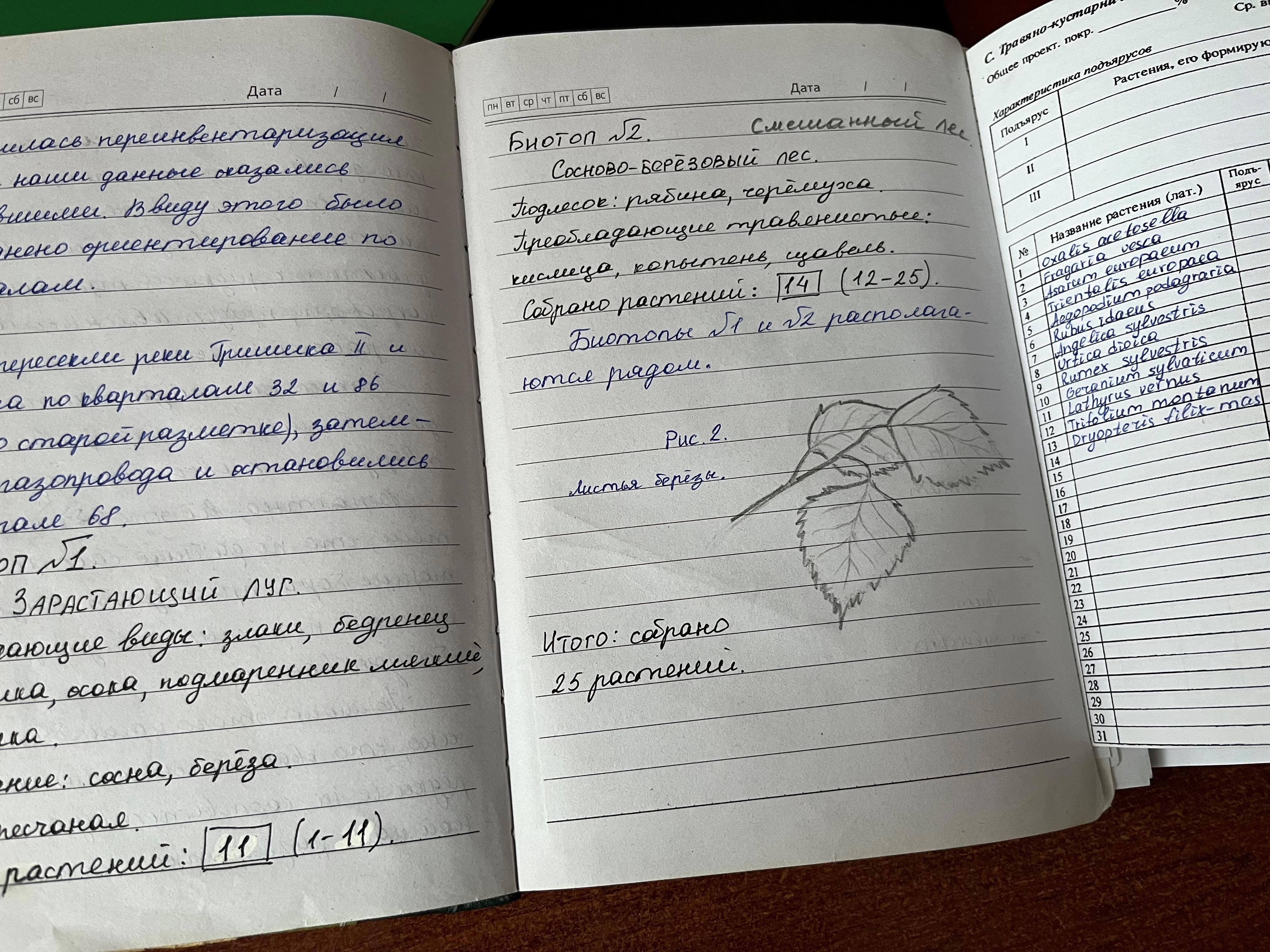Я описывала биотопы (какие растения там есть) и собирала гербарий.