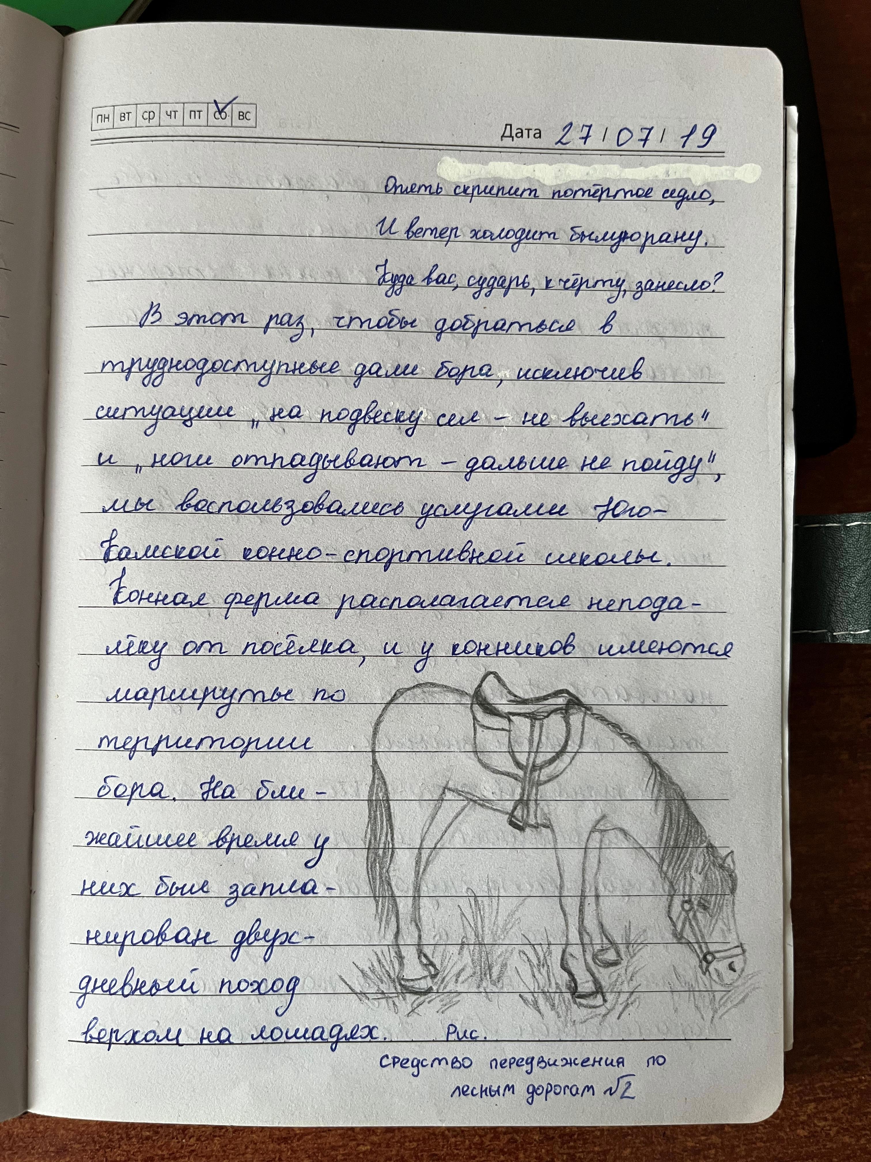 И ещё ездила верхом на лошади (там как раз рядом конно-спортивный клуб).