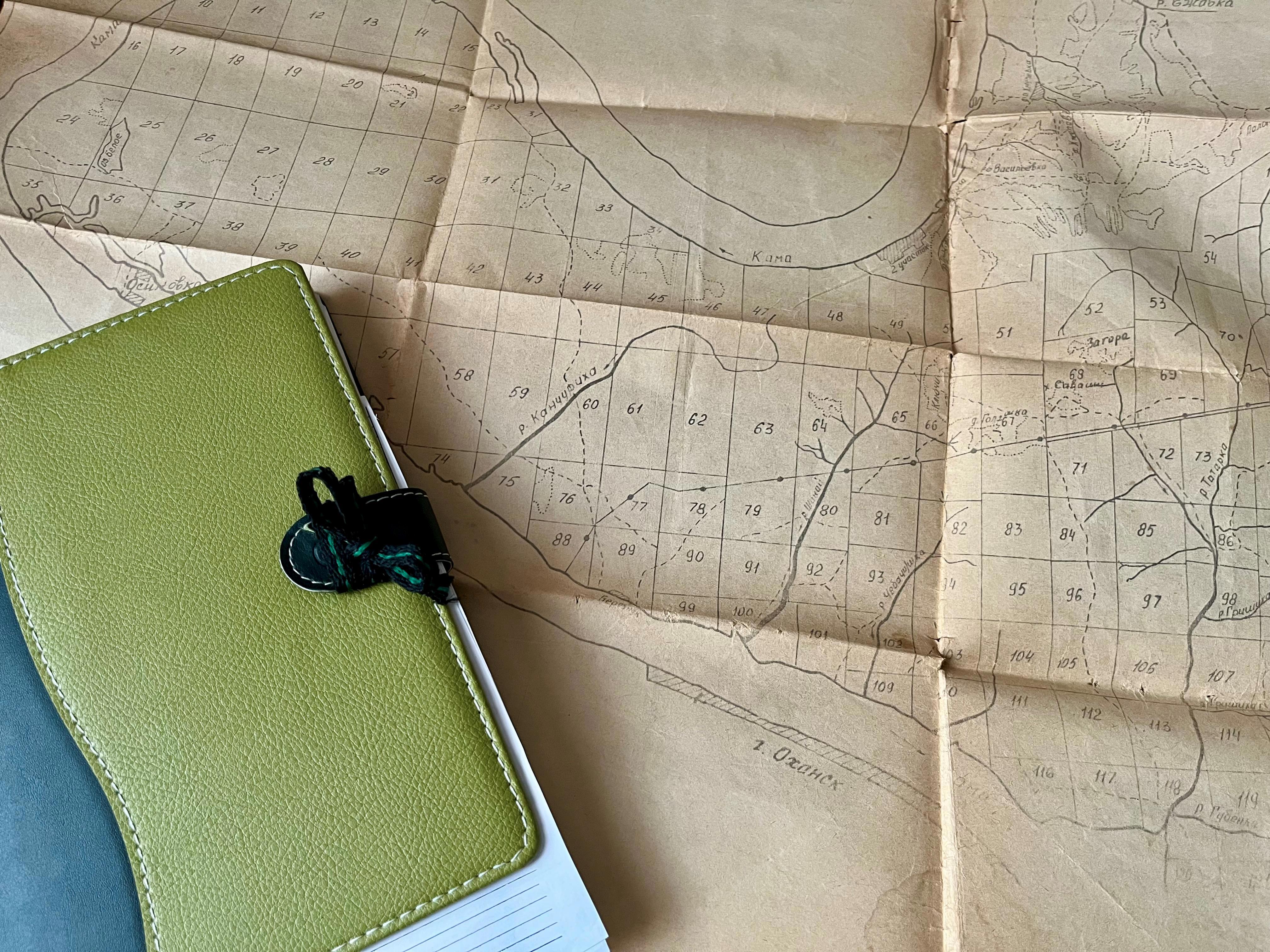 Но у меня была настоящая карта, на старой жёлтой бумаге. Я описывала маршруты, вносила исследовательские данные, вкладывала списки названий растений на латыни, делала зарисовки и вклеивала гербарные листики.