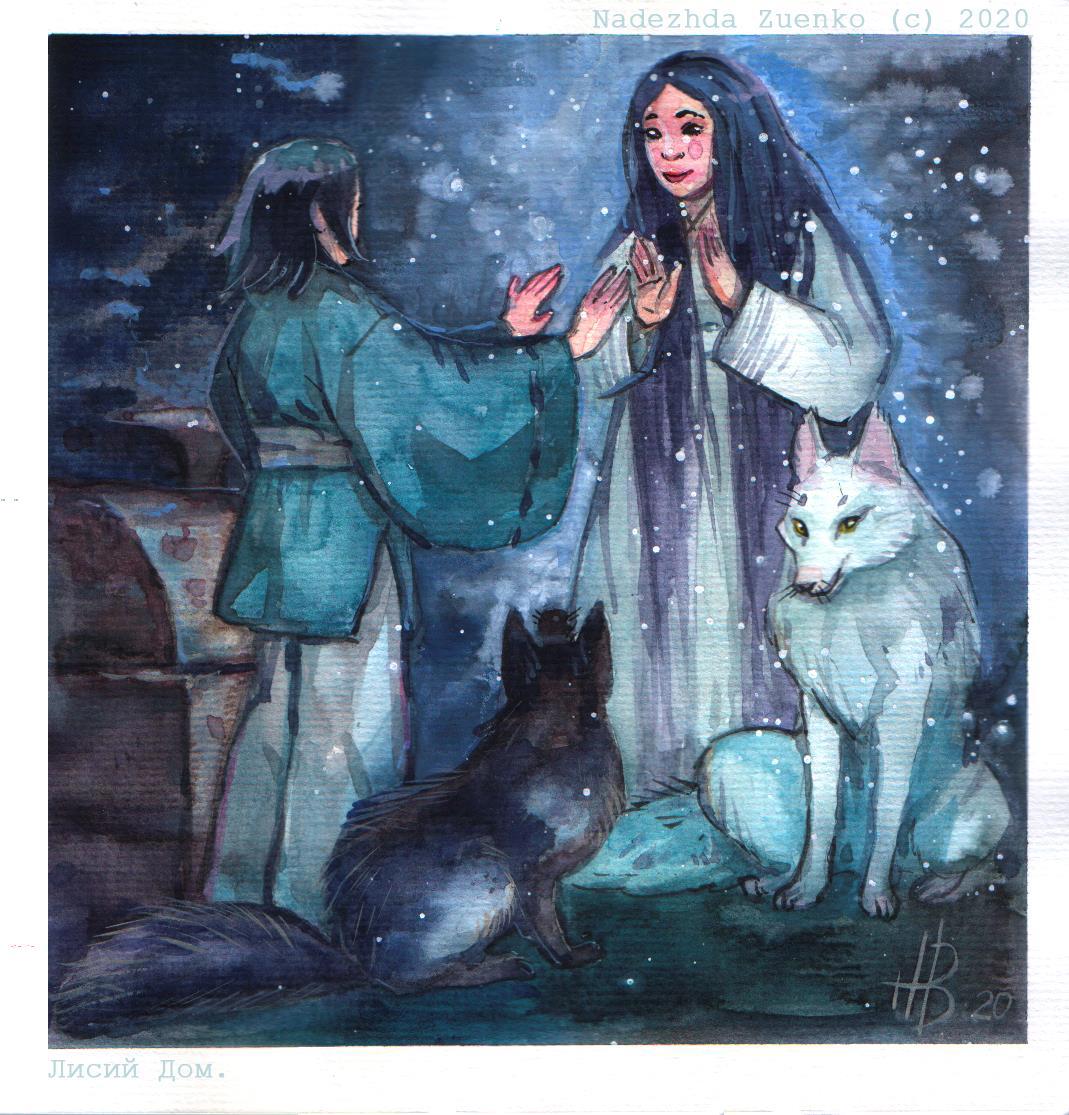 Автор: Елена Колоскова (Тарья Сампо)Акварель Надежды Зуенко ко 2 тому "Лисьего дома" . Сцена встречи героини с призраком ее матери.