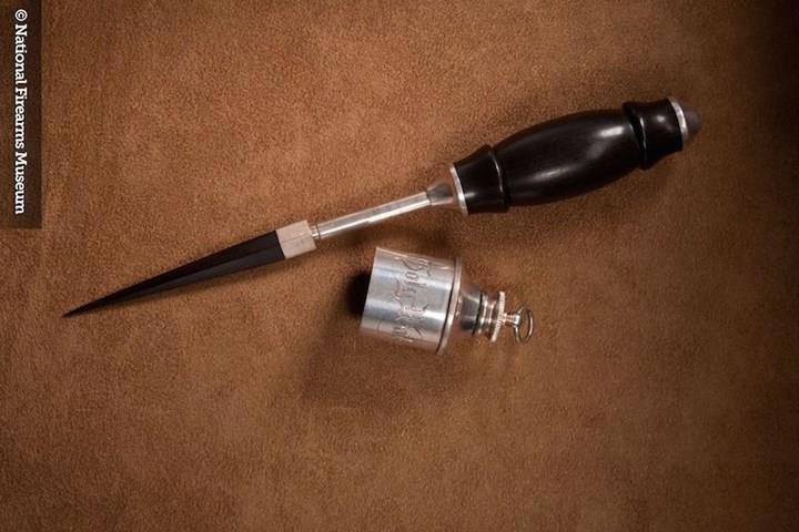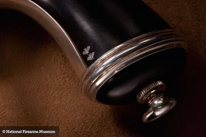 Рукоятка черного дерева, и как звездочки на фюзеляже на ней изображены летучие мышки (по числу сбитых).