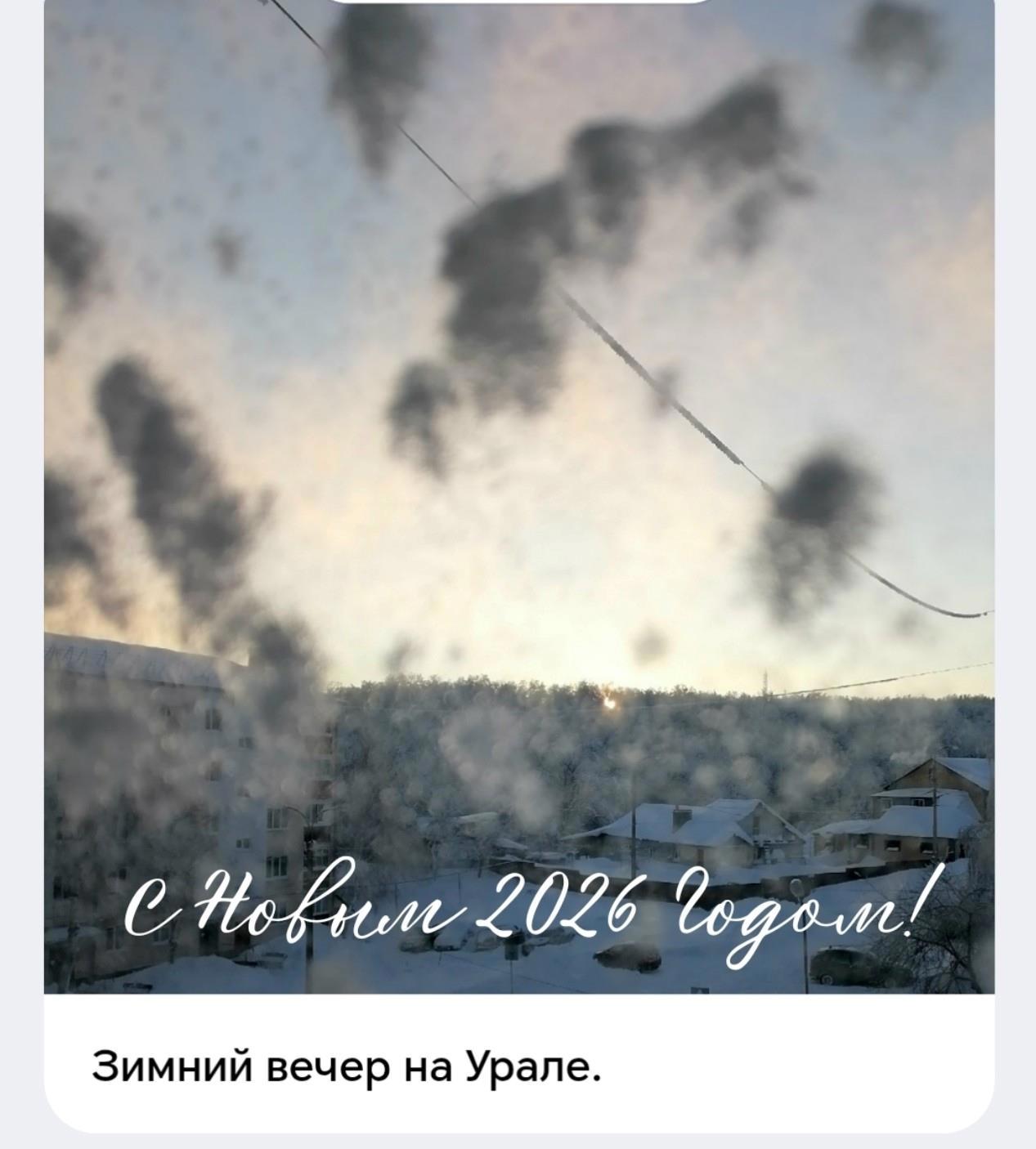 Автор: Ильза ВалиахметДорогие читатели, поздравляю с Новым Годом, побаловалась со своими фото Новогоднего утра, сделала открытку на Новый год 2026 года.
