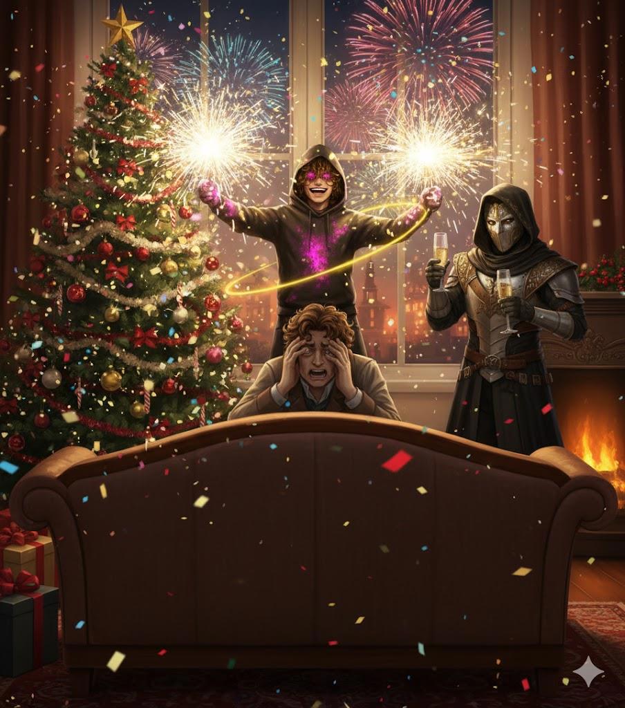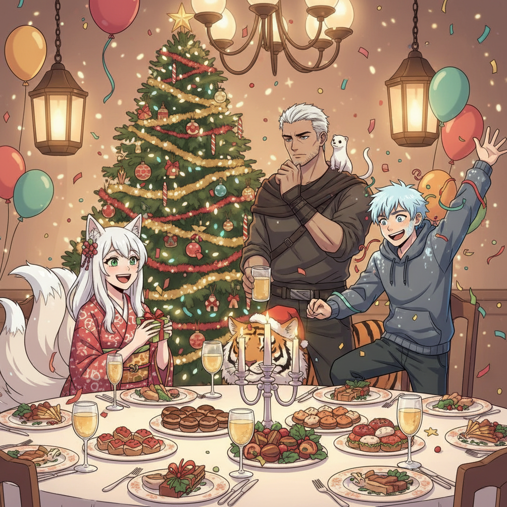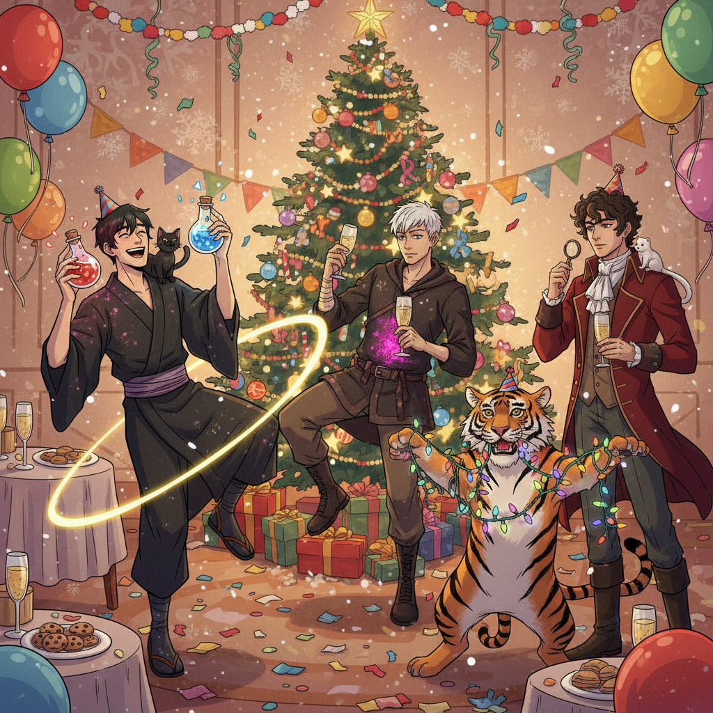 Представьте себе: новогодняя ночь, где-то в параллельном измерении. Снег за окнами, фейерверки, а в камине потрескивают поленья. И вот персонажи из произведений множества писателей решили устроить грандиозную вечеринку!