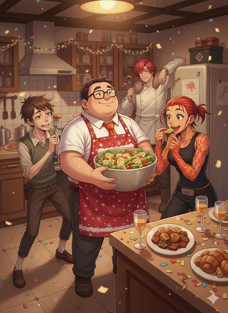 Вы только представьте эту картину: они все собрались вместе, отложив в сторону драмы и приключения своих историй. Кто-то лихо откупоривает бутылку шампанского так, что пробка летит к потолку с веселым хлопком, кто-то дегустирует изысканные блюда (благо среди гостей оказались настоящие шеф-повара!), а кто-то просто наслаждается моментом, когда можно расслабиться и забыть о сюжетных невзгодах.