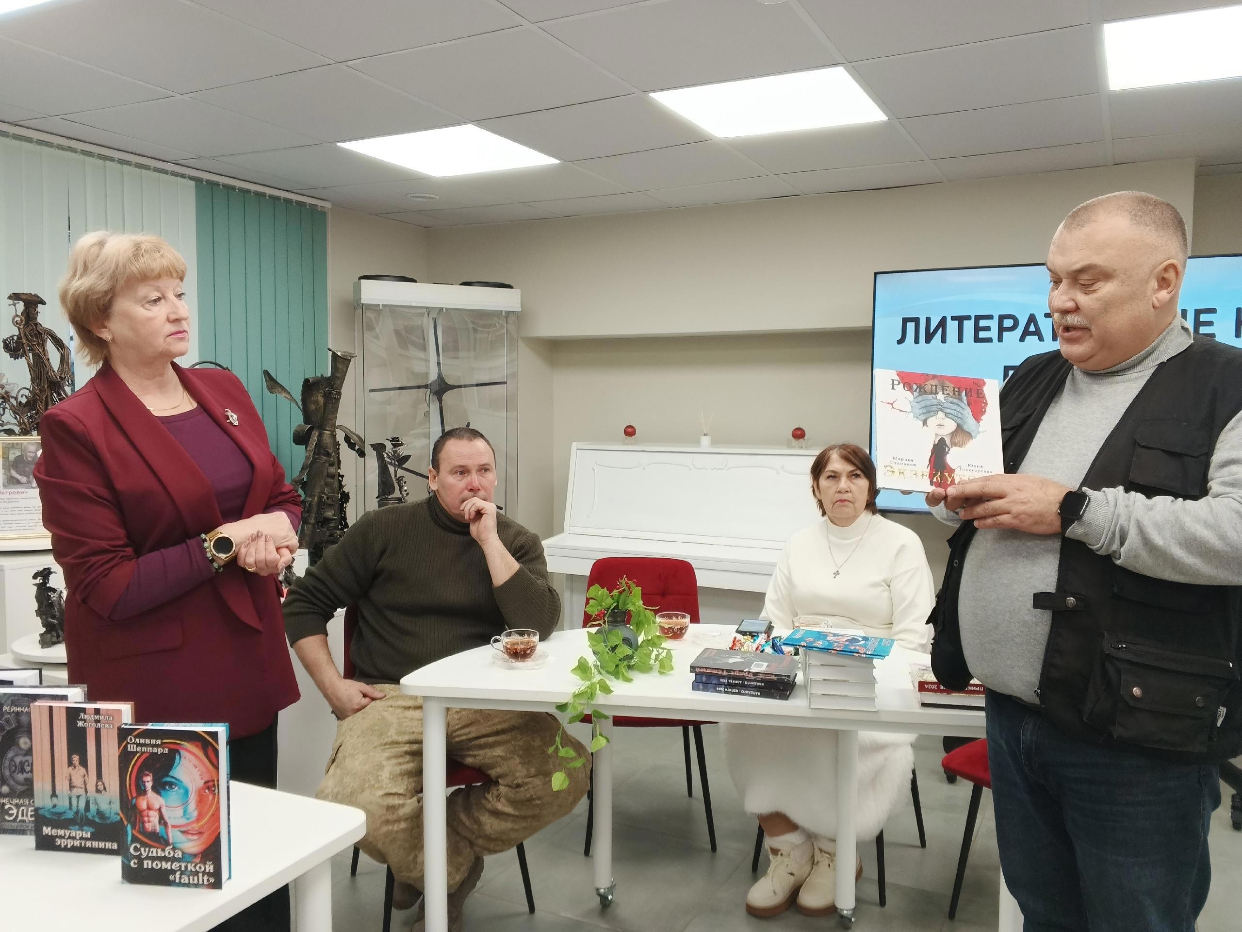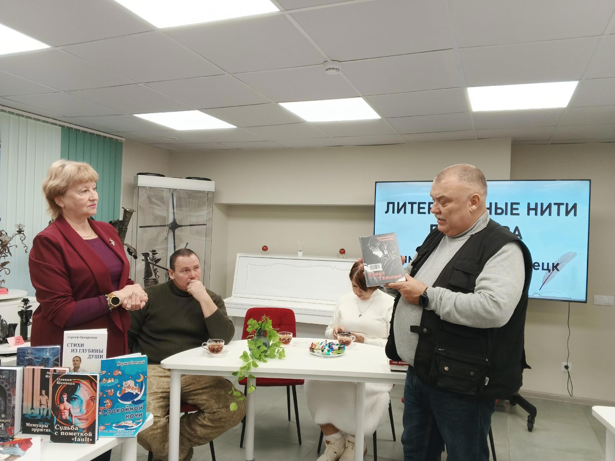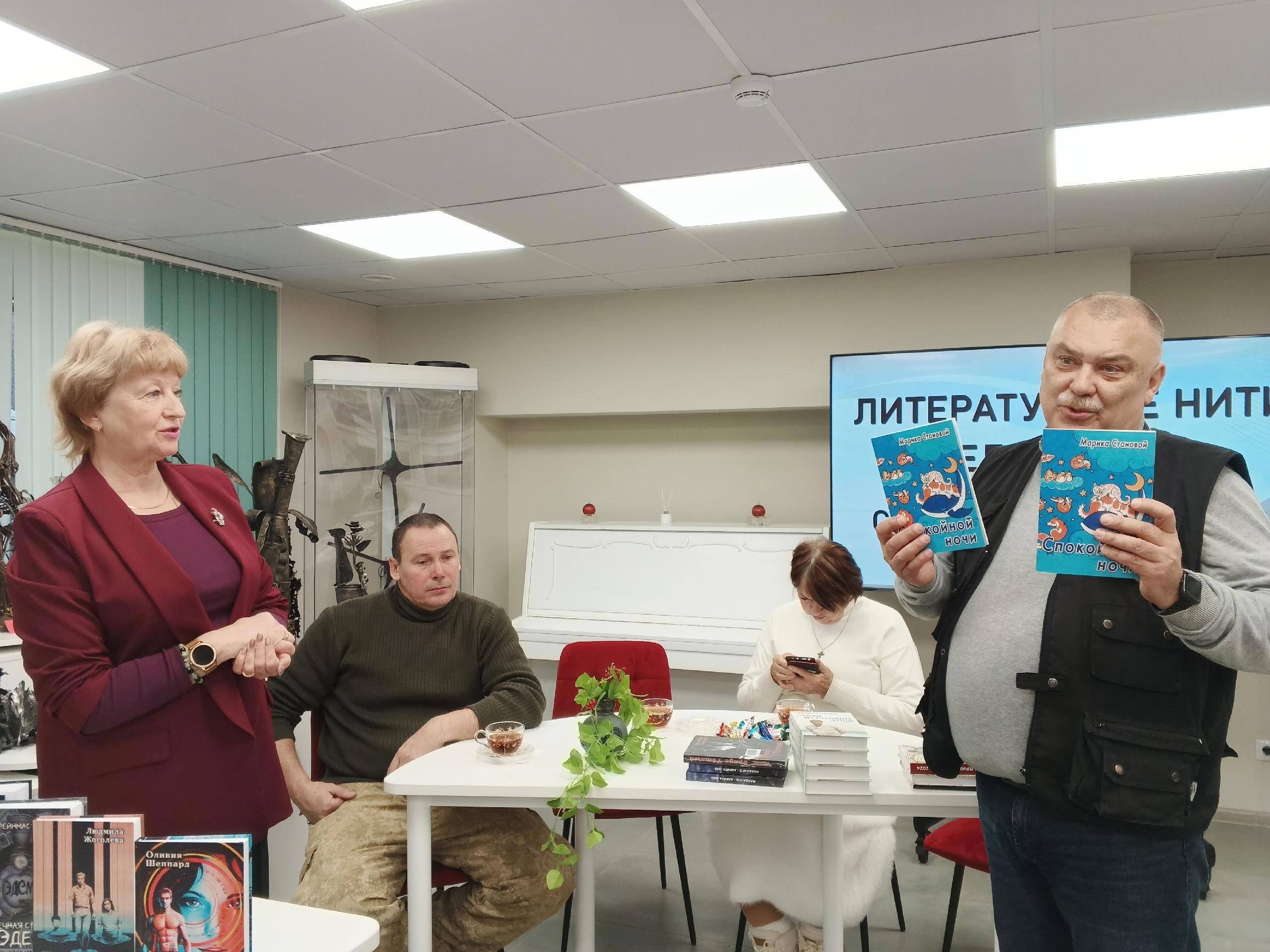 Затем Сергеё коротко представил нас всех, тем более, что Раису Яковлевну (писатель, волонтёр, бабушка бойца СВО) и Тимофея Николайцева (писатель, поэт, боец) - в библиотеке ещё не знали.