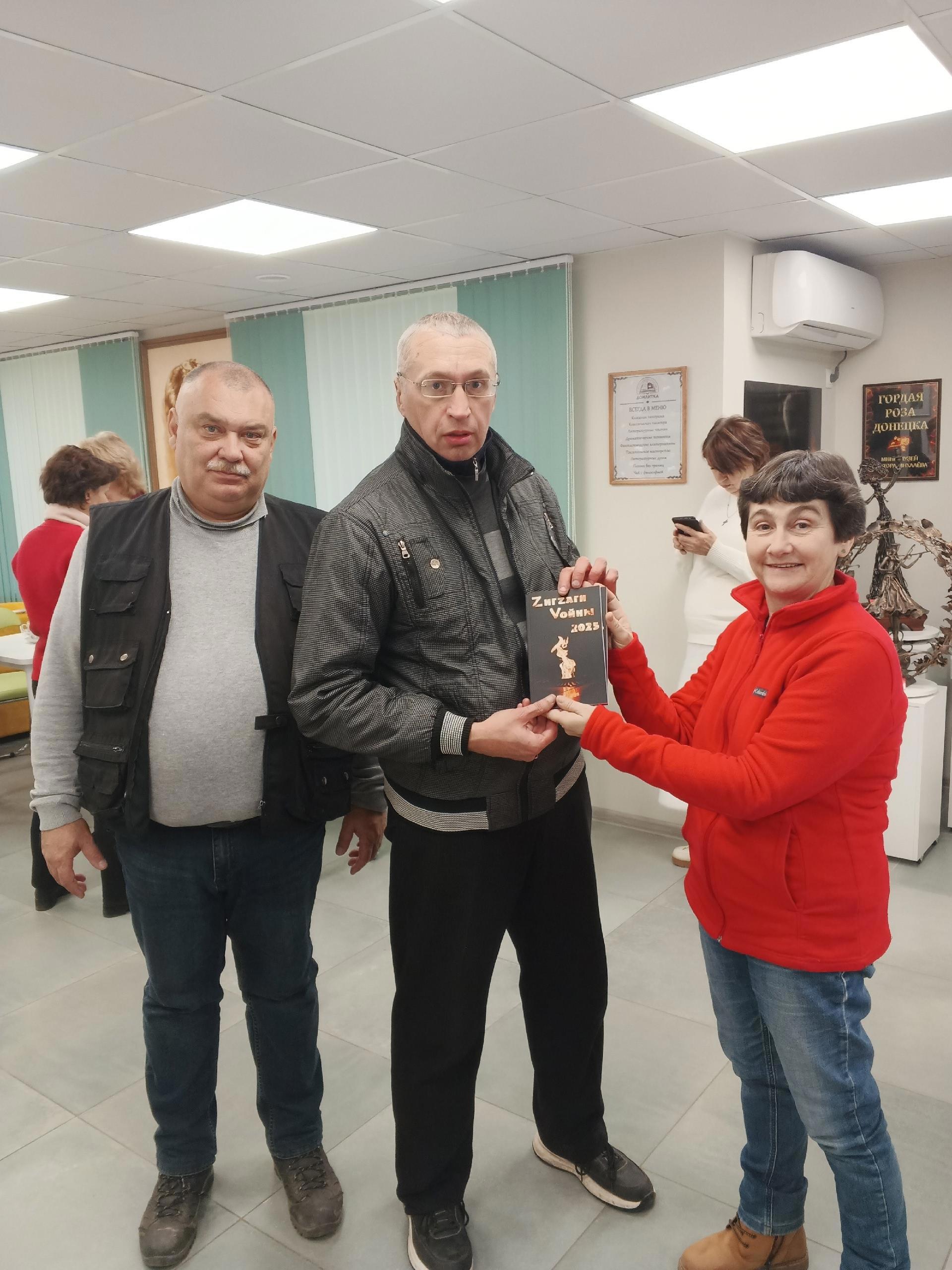 Вручение книги "Zигзаги Vойны" одному из участников проекта Саше Русскому. Фото Галины Малышевой.