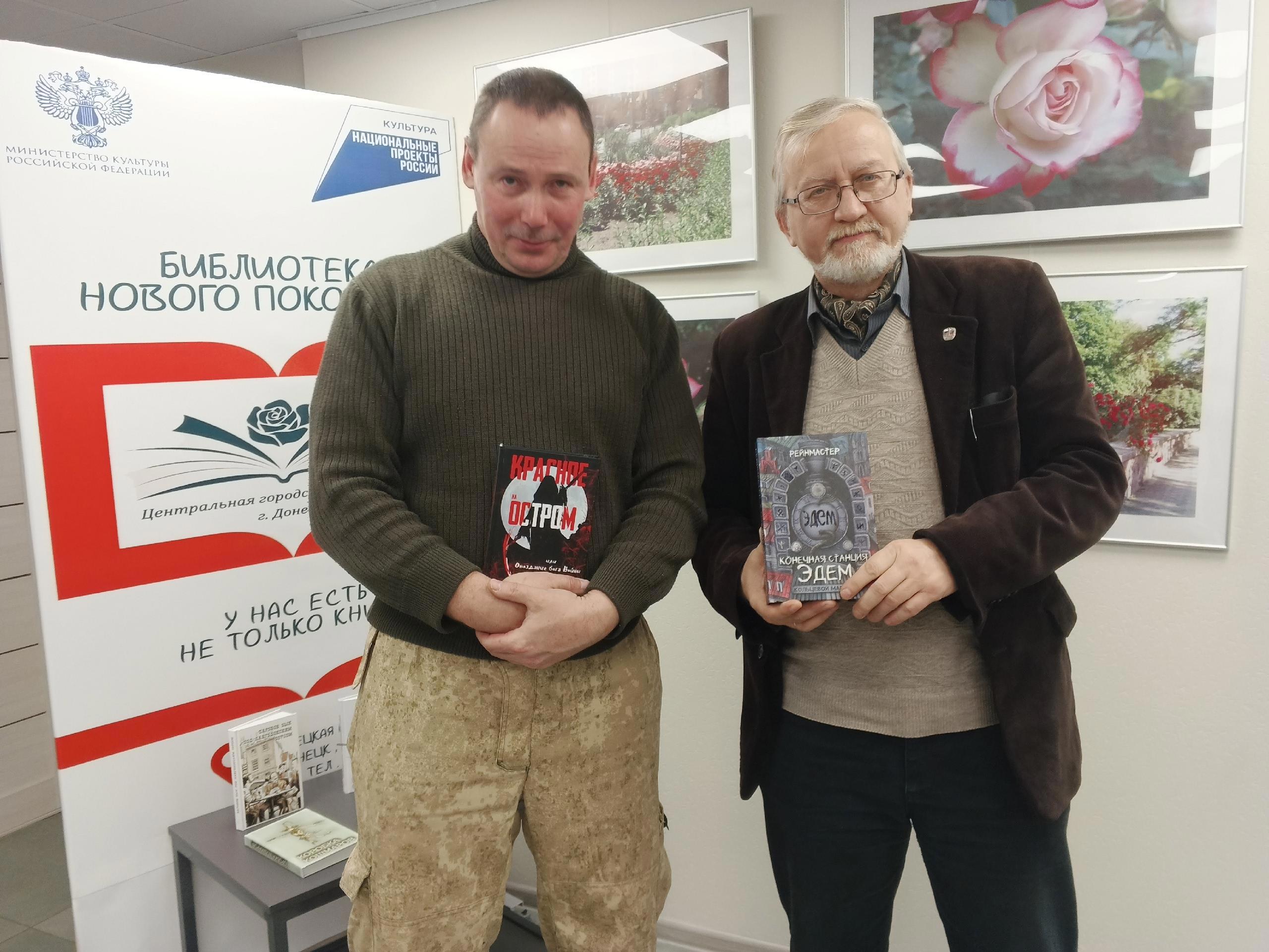 Как сказал сам Тим: Когда-то давным-давно я обещал, что попробую отвезти в ДНР книгу своего товарища Екатерины Рейнмастер, подарить библиотеке и, возможно, немного поговорить о ней с теми, кому это может быть интересно. В этот раз мне удалось упасть на хвост моим товарищам из крымского издательства СеЖеГа и просочится на творческую встречу «Литературные нити единства. Симферополь — Донецк», которая прошла в литературном кафе «Донлитка» в центральной библиотеке города. Обещание выполнено и даже с некоторым блеском! Вот смотрите – книга «Конечная станция – Эдем» в руках председателя союза писателей ДНР Владислав Русанов Владислава Русанова, с наилучшими моими пожеланиями.