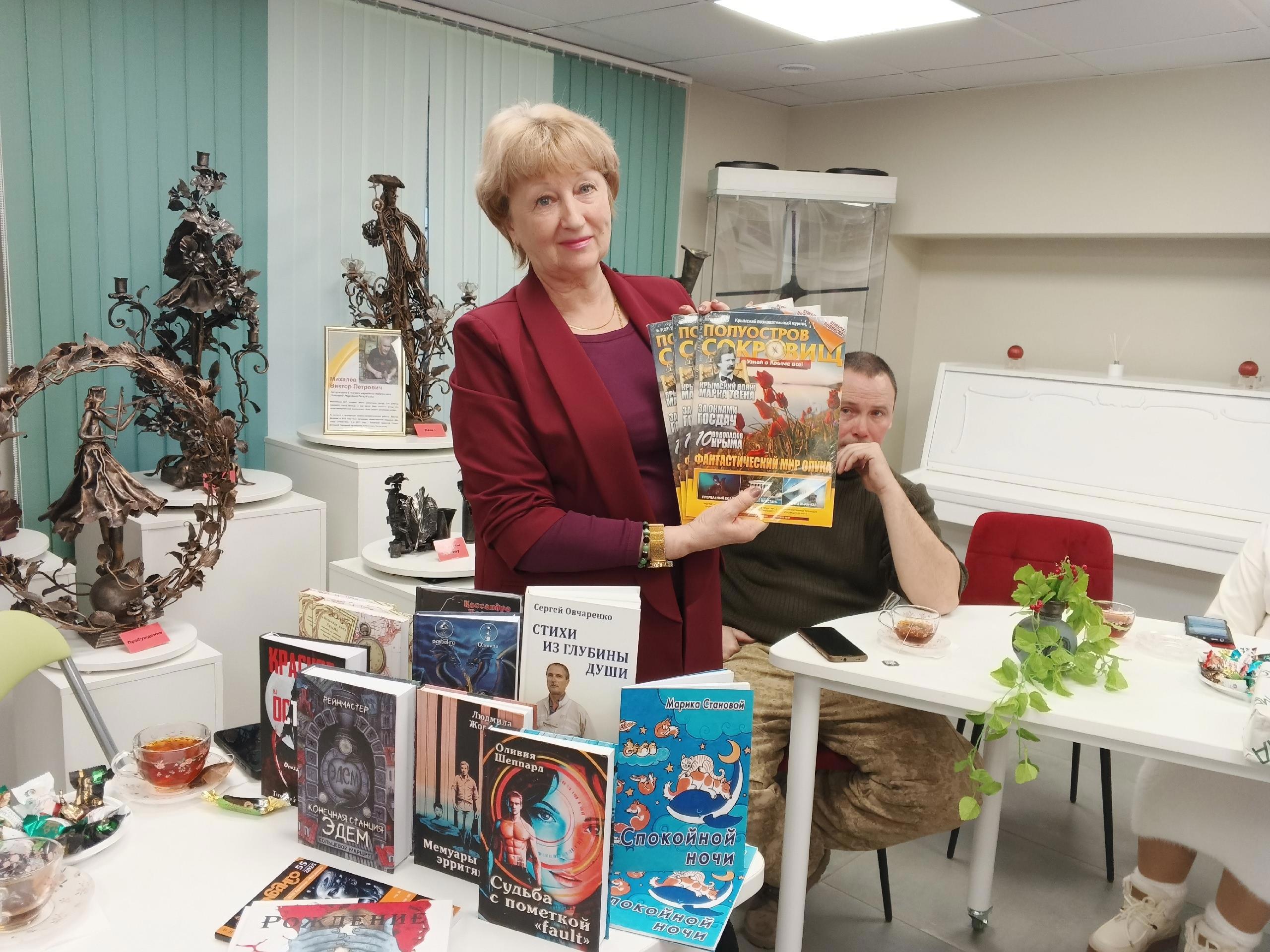 Затем мы вручили библиотеке экземпляры книги "Крымское приключение 2025". Этот сборник выходит вот уже десять лет по итогам конкурса, который проводит газета "Московский комсомолец