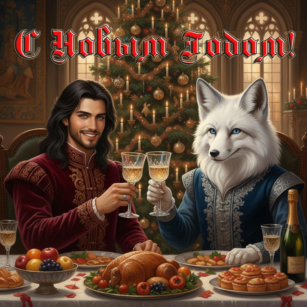 Пользуясь случаем, передаю вам поздравления от наших друзей Марка де Сегюра и Самого красивого лисика в семье Ли Джин Хо. Они тоже празднуют, как видите. Лисы пригласили Марка в свой замок, и хоть наличие в гостиной спиленного дерева, украшенного всякими разными блестящими штучками его удивило, он признал, что это красиво. В пространные разъяснения этого обычая он вникать не стал, воздав должное угощениям. Если у кого-то возник вопрос по поводу лисьего облика Джин Хо (как у меня, например), то он пояснил, что лисы устроили карнавал, а самый красивый карнавальный костюм для лиса - его собственный облик. Спорить сложно!