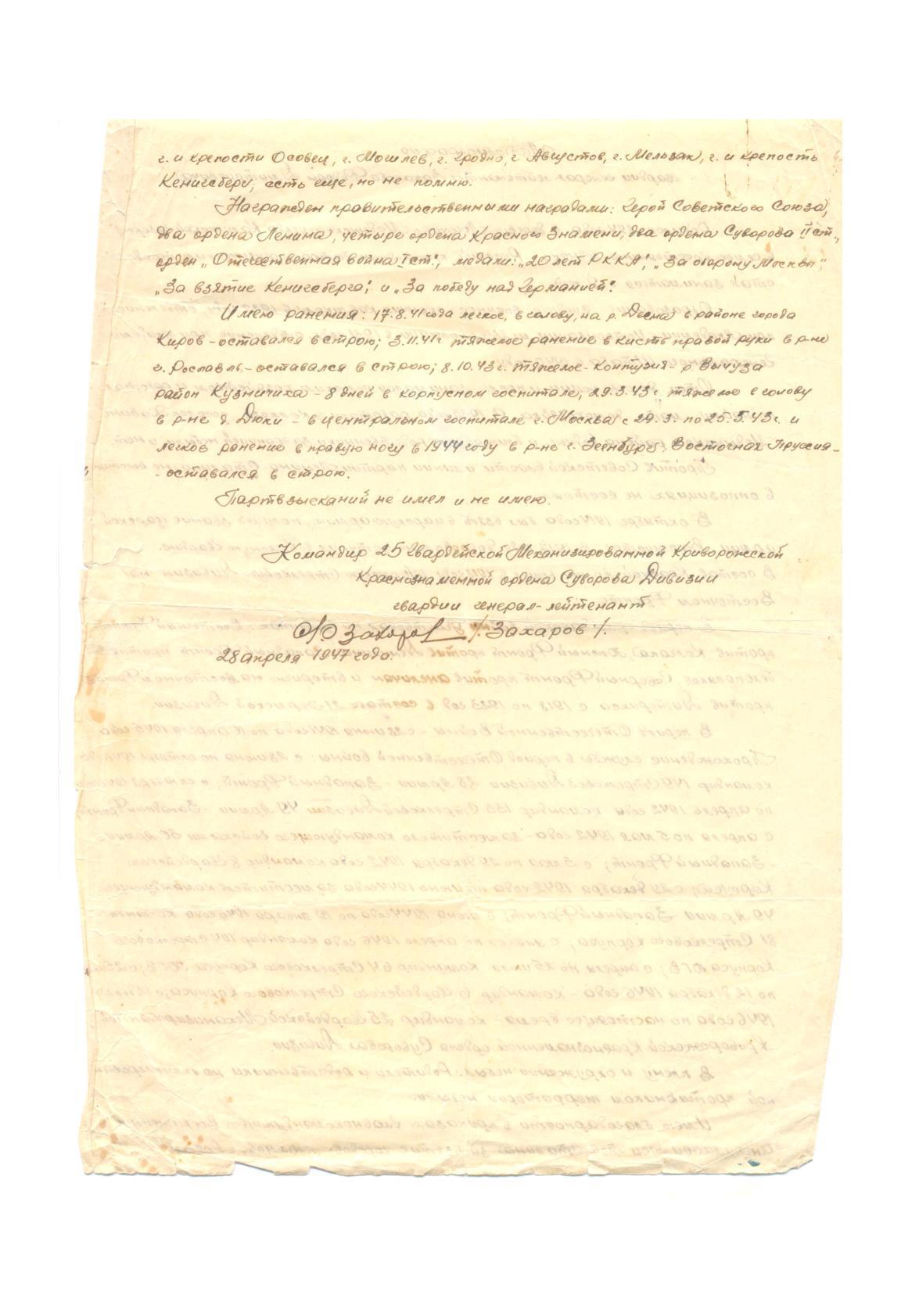 Сегодня со мной связался его внук Захаров Игорь Владимирович. Вот выдержка из его письма: