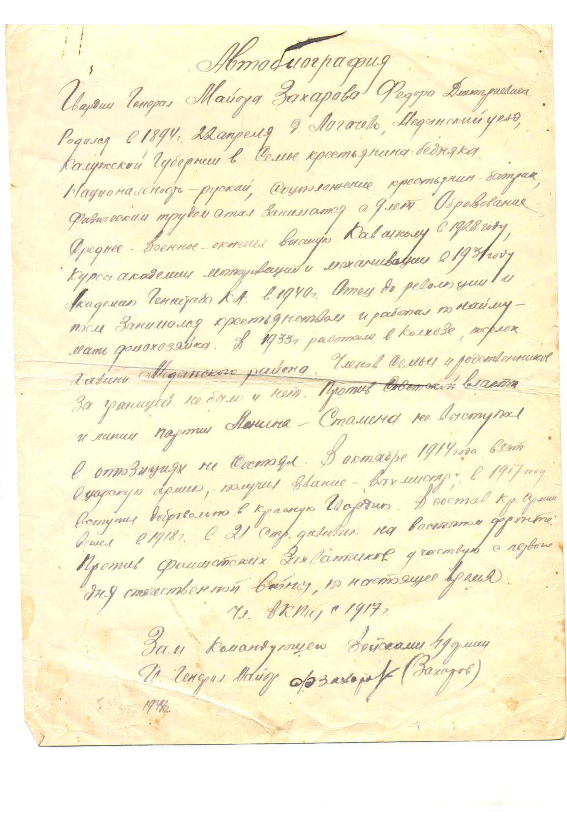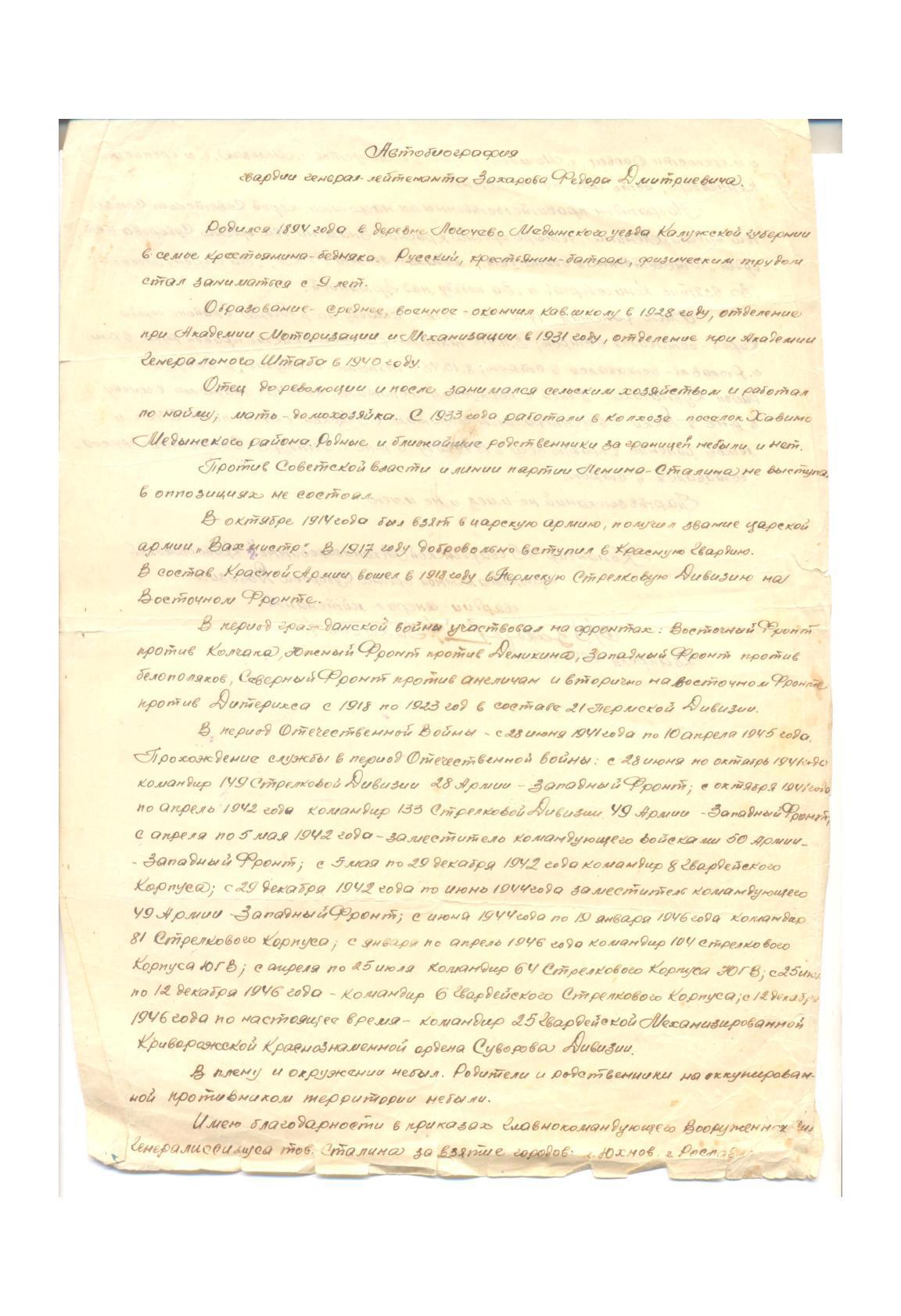По моей просьбе Игорь Владимирович прислал мне копии уникальных документов времен героической обороны Москвы. Хочу этими документами поделиться. Здесь фотографии, краткая автобиография генерала и листы с собственноручно написанными воспоминаниями.