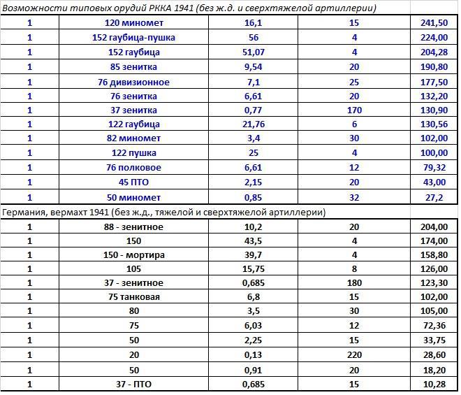 Сравнение артиллерийской мощи сд РККА 1941 и пд вермахта