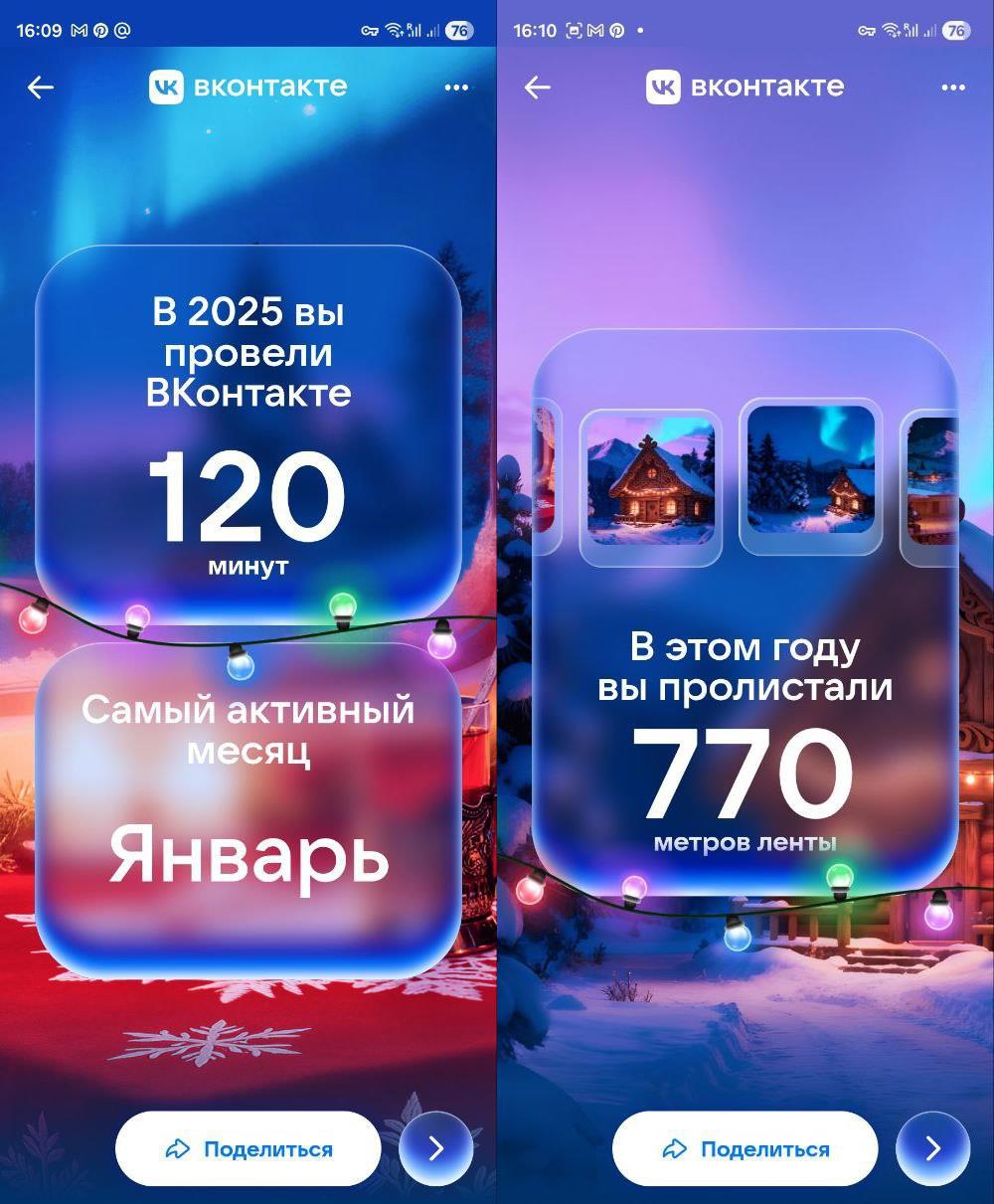 ВКонтактик говорит что я на него, бедолагу, совсем забил - в этом году только 2 часа провел в ВК и налистал 700 метров ленты. Товарищ майор, очевидно, недоволен: