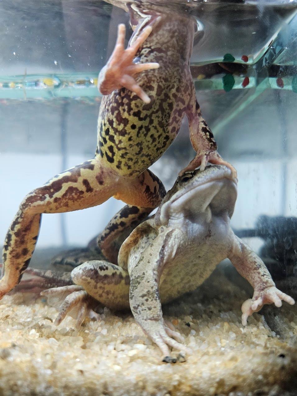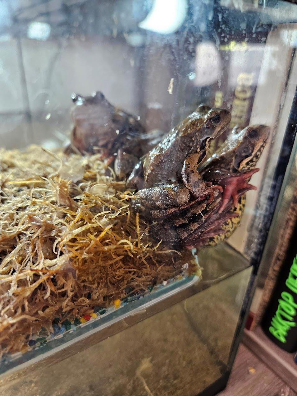 А еще у меня всю зиму жили лягушки. Нашли их в подвале стройки, когда уже снег выпал и лед встал. Они попытались впасть в спячку в дренажном приямке. Выгонять на улицу уже было нельзя - замерзли бы. В подвале тоже бы замерзли, он был неотапливаемый тогда. Так что оставили дома.