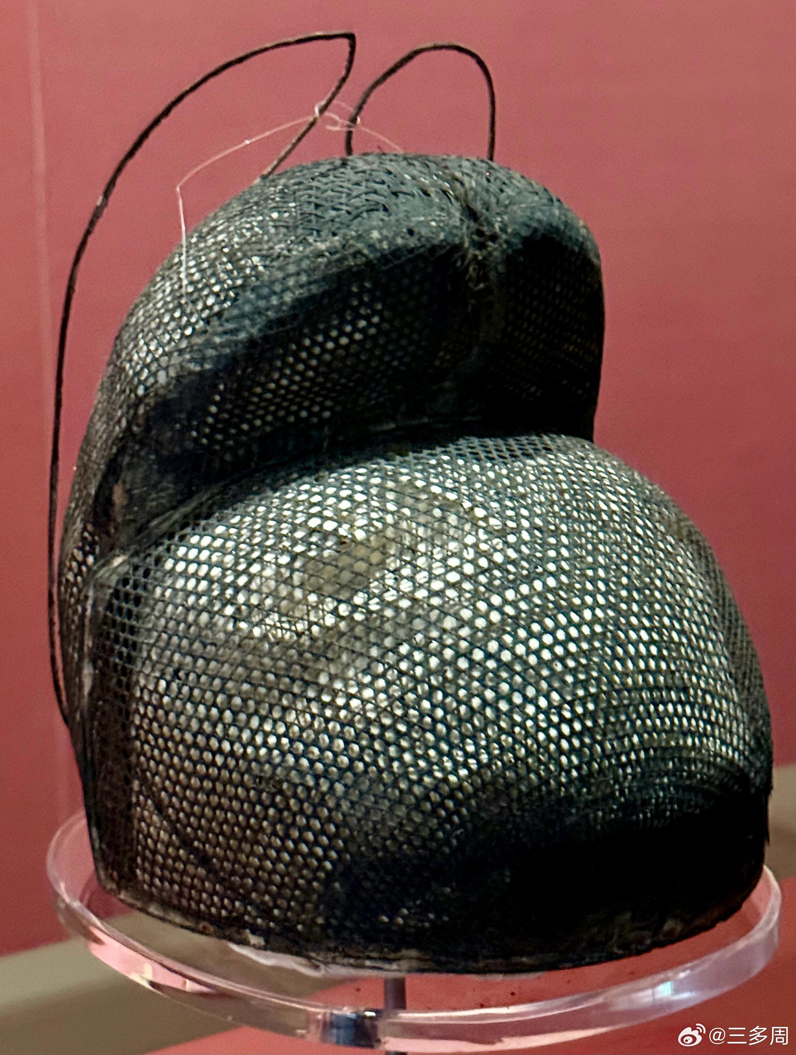 🟡 Как и обычные ушамао, ишаньгуань изготовлялся из черного сетчатого шелка, пропитанного лаком, иногда на бамбуковой или проволочной основе. В затылочной части головного убора присутствует возвышение, в котором находятся собранные в пучок волосы, а на нем - жесткие, загнутые вверх полоски черного шелка, имитирующие завязки, существовавшие в прежние времена, когда эта шапка еще была матерчатым головным платком.