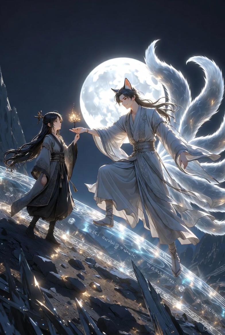 Она широко открыла ещё красные после ныряния глаза и рассмотрела мужскую фигуру в светлой мантии, залитую мягким лунным светом. Девятихвостый лис, которого она знала, как бродяжку, придвинулся ближе — почти вплотную к барьеру. Юэминь показалось, что невидимое глазами покрывало из очищенной ци, что защищало убежище заклинателей от чужаков, возмущённо завибрировало, учуяв демона.