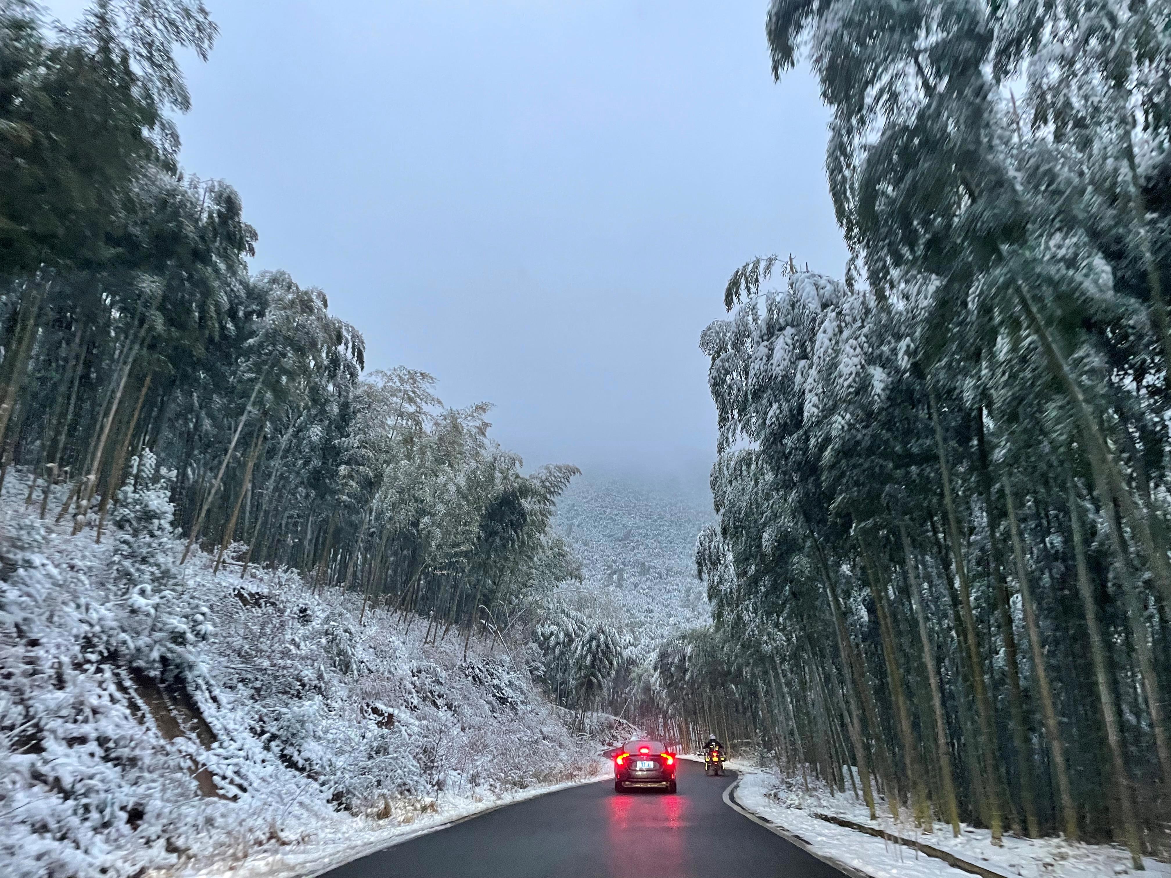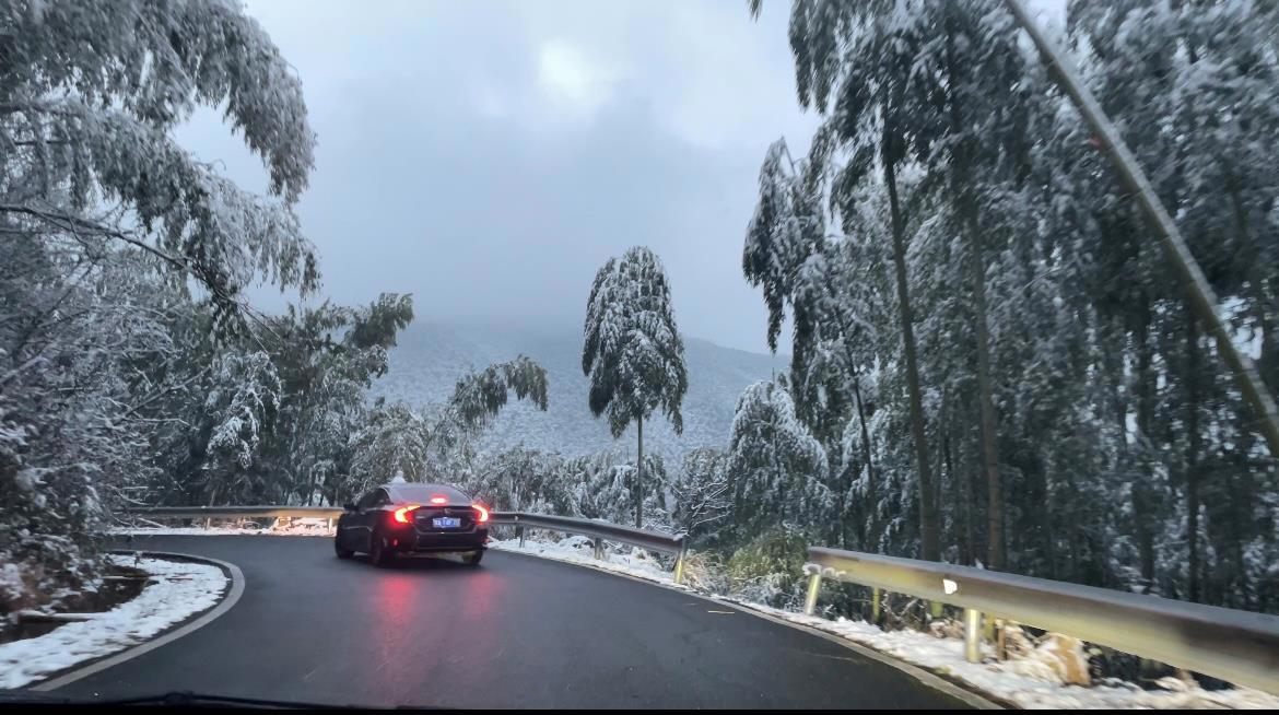 Лайфхак тем, кто живёт на востоке Китая. Если погода +4 и идёт дождь — езжайте на вершину горы. Кидаю фото с последней поездки