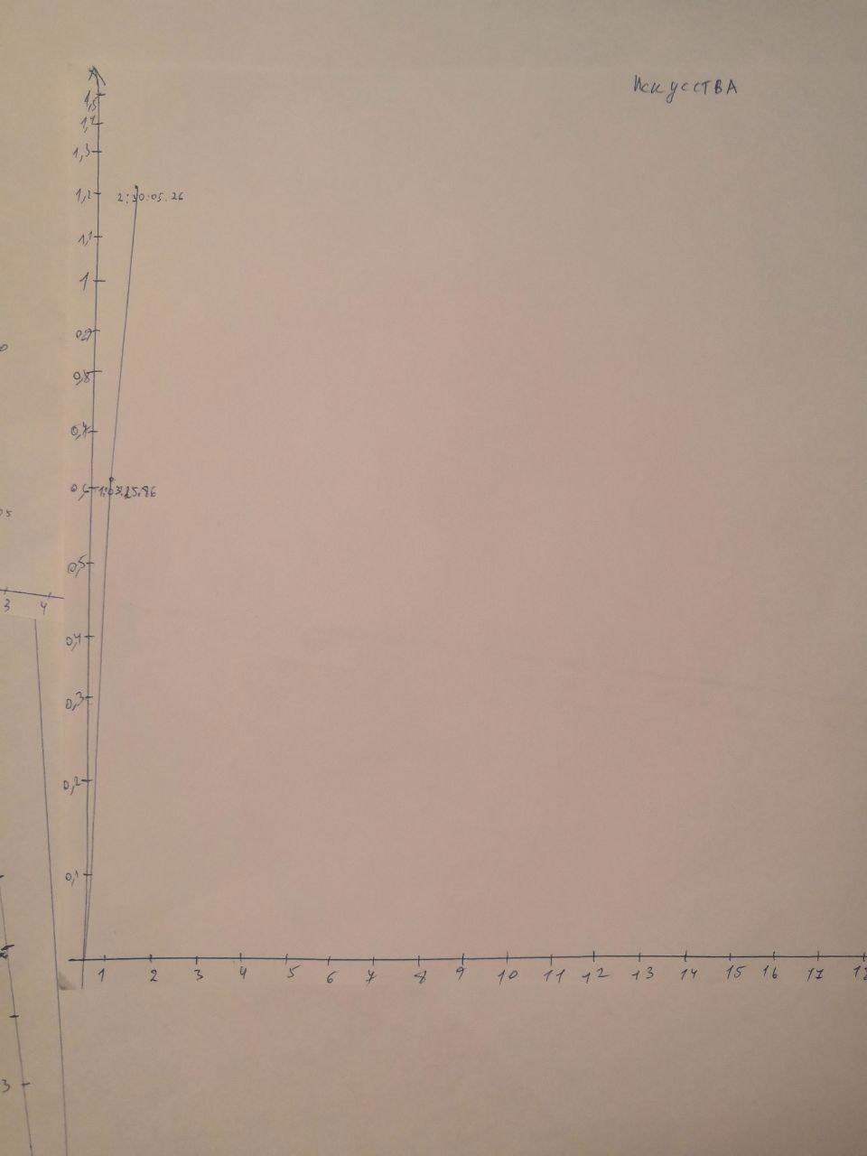 Так постепенно я пришёл к новой системе - Линейный график. За X я принял дни, а за Y затраченное время. Покажу на примере графика для блока искусств.
