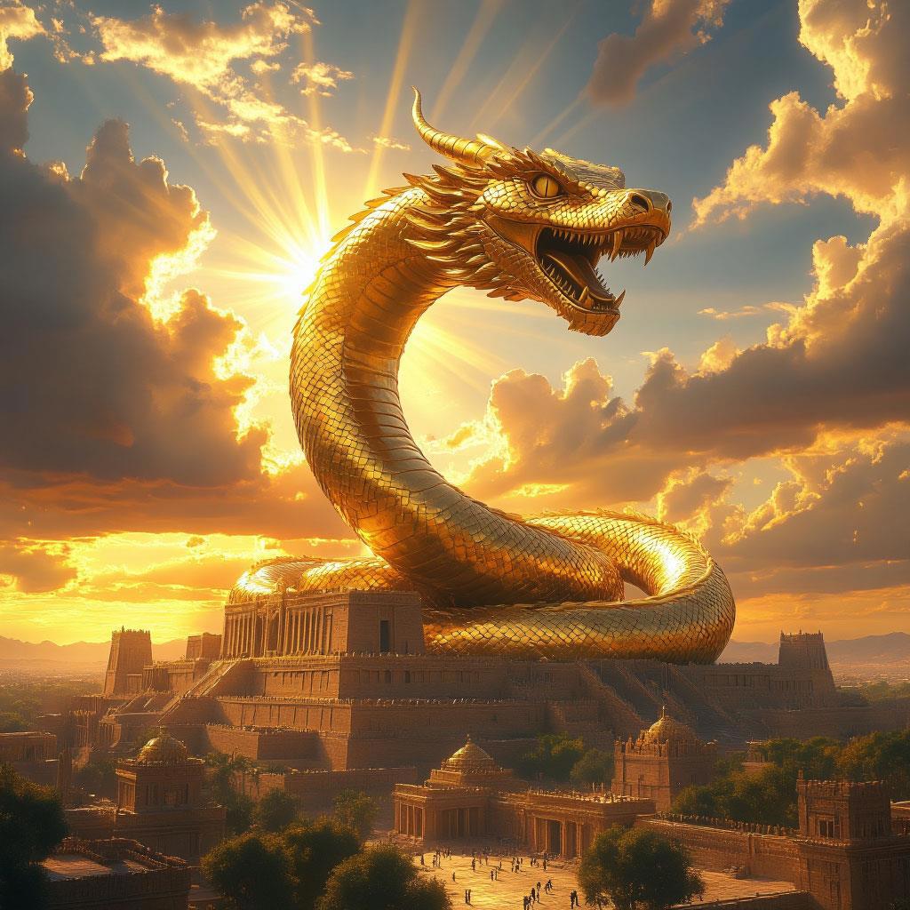 Автор: Павел МарковСтатуя из чистого золота в виде гигантского змея поднималась так высоко, что ее было видно со всех концов Вавилона. А солнечный свет отражался от поверхности и заставлял ее сиять, будто она второе небесное светило. Демон пожелал, чтобы фигура была отлита с его истинного облика. Пусть в человеческом ему вполне удобно, но каждый подданный должен помнить, кто правит им на самом деле.