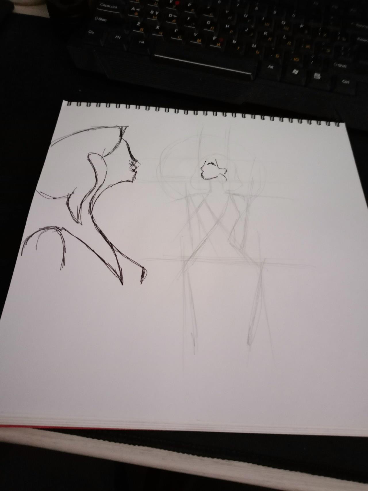 И, как настоящий фанат, копирую её стиль. Начинается всё с таких кракозябр - я ж не художник.