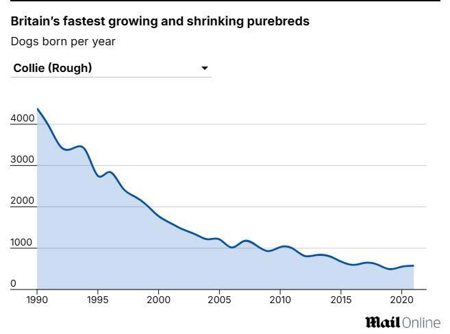 На графике — наглядное падение популярности длинношёрстных колли.