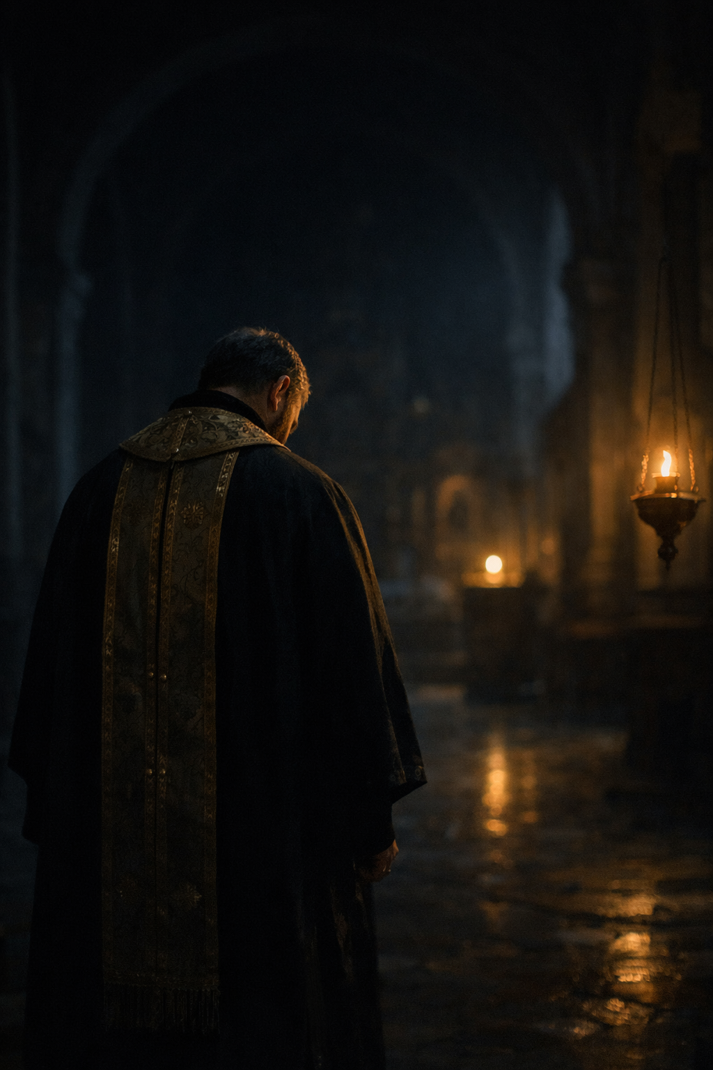 Трудно дышать под тяжёлой, потной епитрахилью.