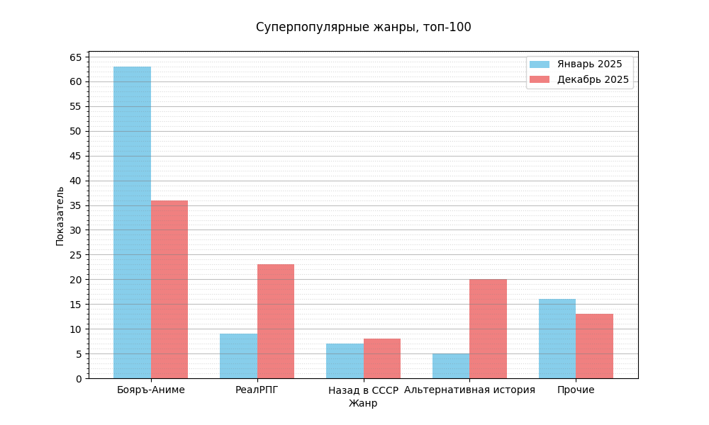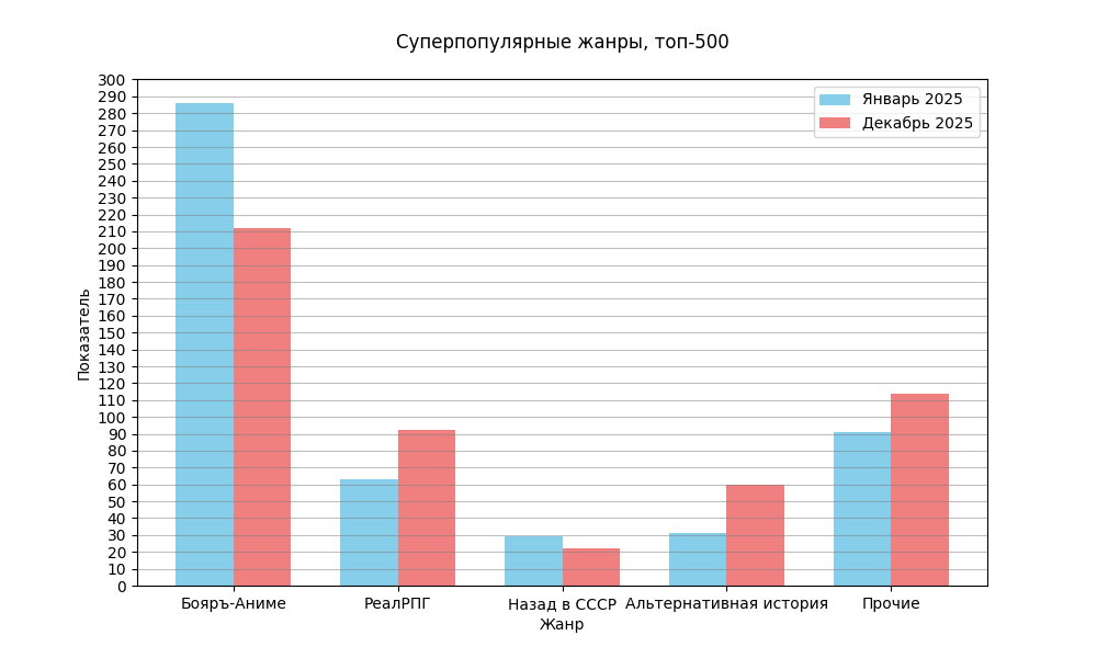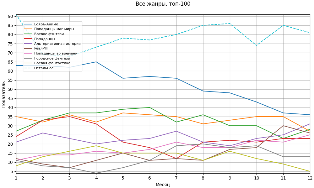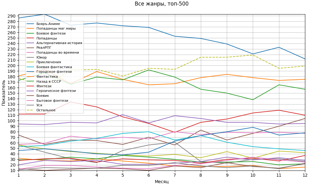 | ЛитРПГ | 10 | 5 | 8 | 8 | 7 | 6 | 8 | 4 | 7 | 5 | 4 | 5 |