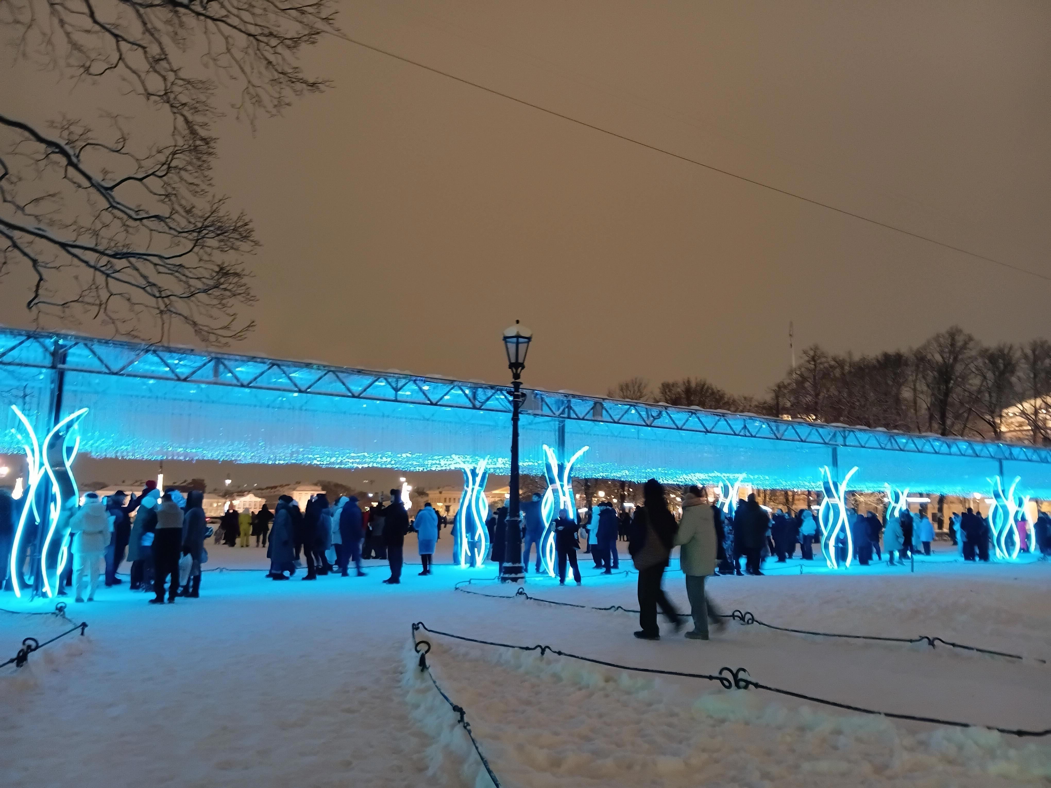 Совершенно космического вида туннель у Медного всадника... и толпы народу, пришедшие посмотреть на это чудо света (серьезно - меня на входе в Адмиралтейскую чуть толпа не задавила, сколько там людей сейчас!).