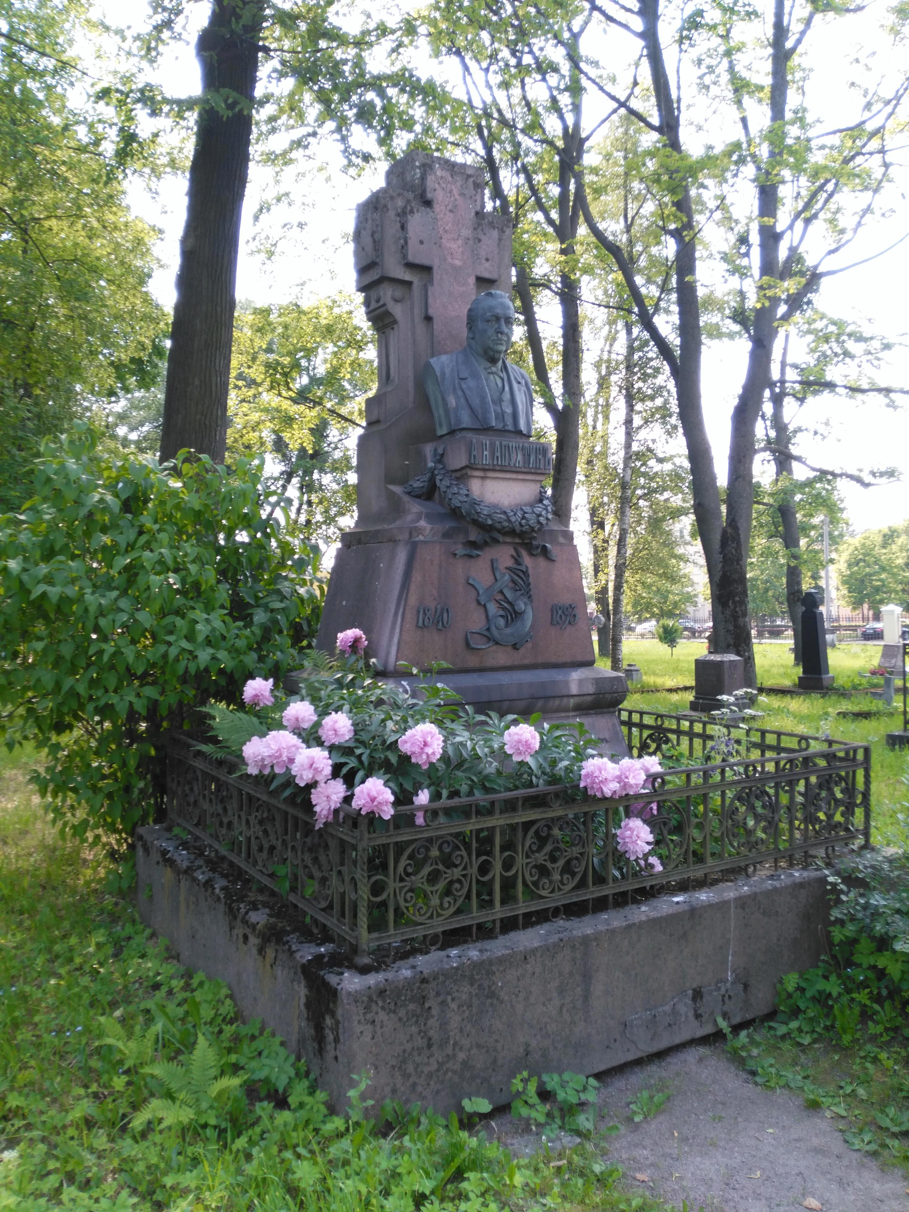 У Апухтина - единственного на много метров вокруг - живые цветы и вообще живенько. Почитатели определенно есть.