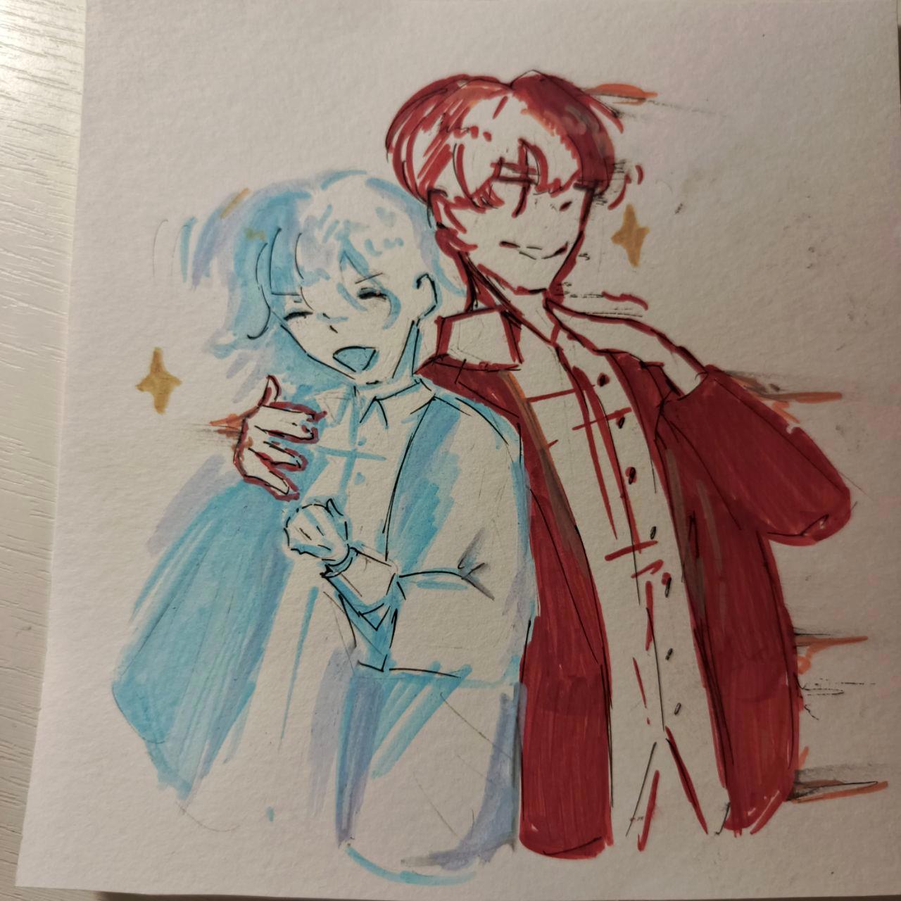Вам пока рисунок с Амикусом и Лектио, а я уже редактирую 2-ю главу, так что скоро можно будет почитать! Спасибо большое за 97 просмотров, и-и-и надеюсь после этого поста мы добьем 100 на "Спящем физмате".