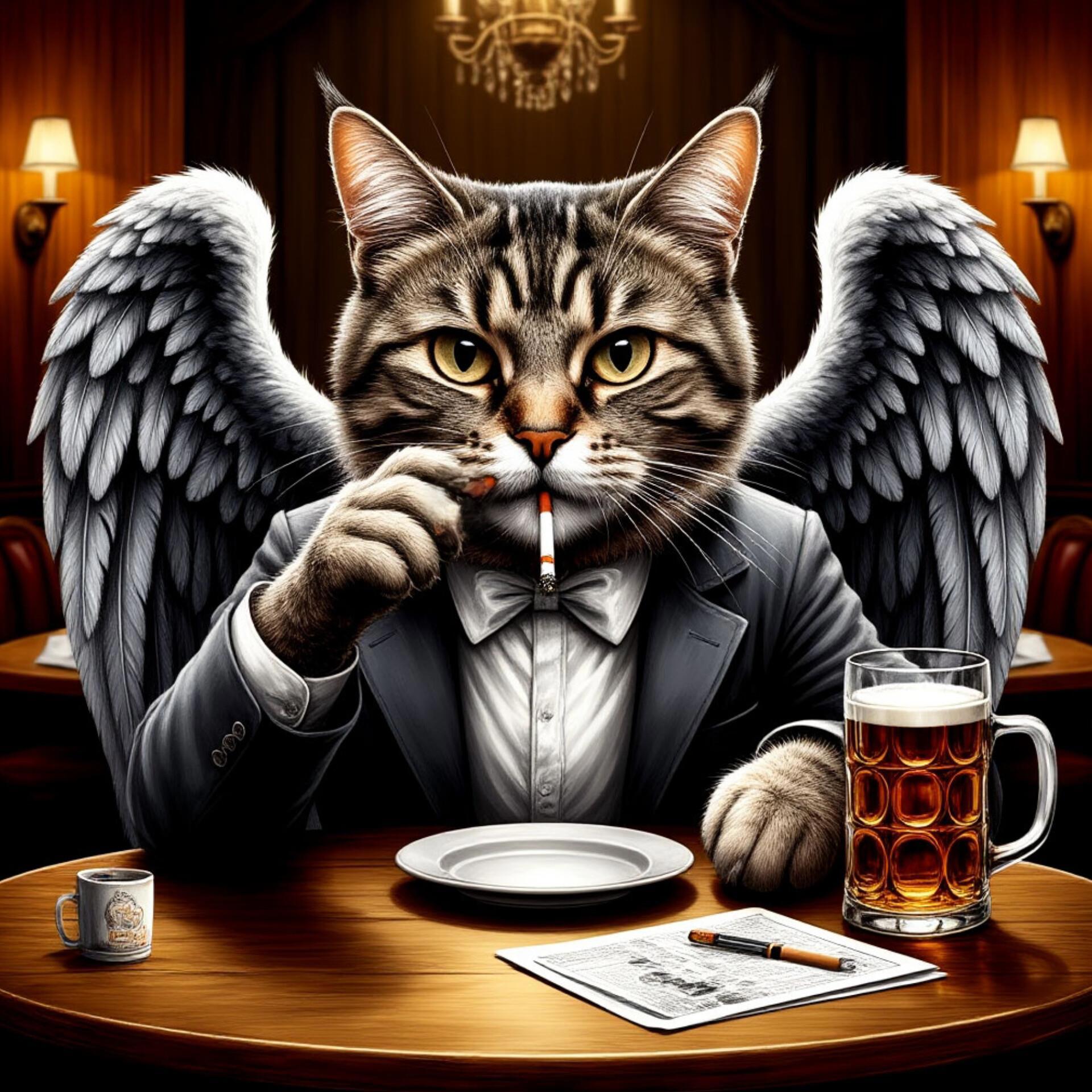 Крылатый кот отставил кружку с пивом и спросил.
