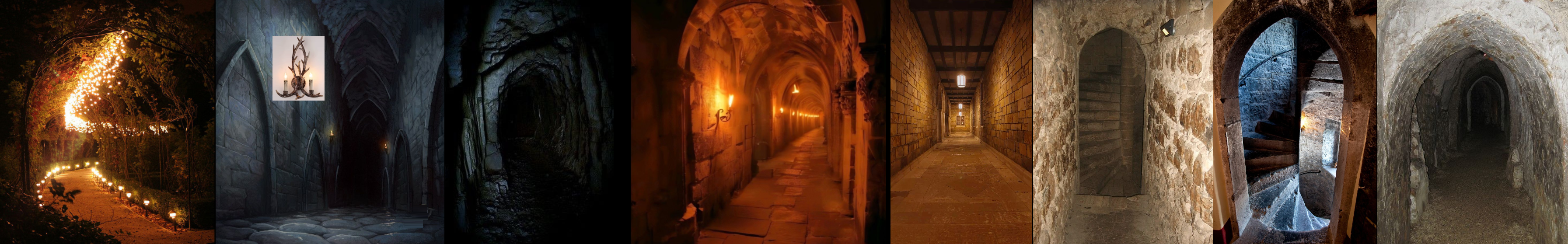Героине часто приходится блуждать наедине со своими мыслями. Часто она попадает в лабиринты, настоящие и своего сознания. 1) лесной лабиринт между мирами, 2) коридор замка, не имеющий конца, спускающийся без лестниц в подвалы, где оживают тени, 3) роскошный живой иллюминированный коридор на пути к Артуру, 4) коридоры лавки "Вкус стали". Сцена с Джаспером в коридоре даёт отсылку к любимой книге моего детства "Тому Сойеру", а именно главе "Том и Бекки в пещере". В главе "Вкус стали" магазин со своими коридорами напоминает трактир из фильма "От заката до рассвета", вроде врытой в землю пирамиды.