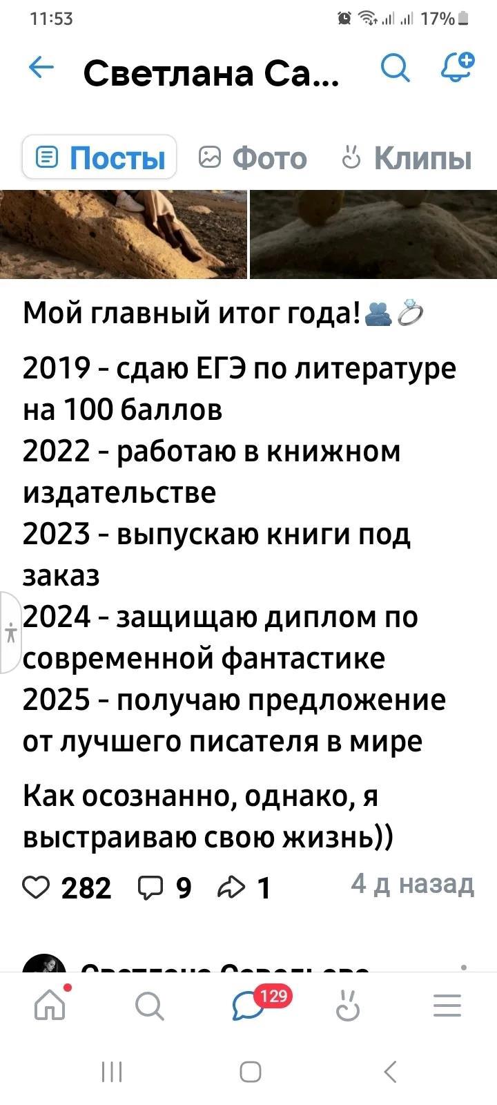 Автор: Лариса СергеевнаОчень рада за своего знакомого Алекса Гора, https://author.today/u/lomion8383, который круто поменял свою жизнь под Новый год и сделал предложение своей девушке, с которой приходилось урывками встречаться в последние 2,5 года. Встречались они, невзирая на его семью с тремя детьми и ее сожителя, просто урывали время в его командировках. Но теперь все препятствия отброшены, трое детей остались с мамой - воспитателем детского сада, отец встречается с детьми, когда его левая нога захочет. Например, Алекс Гор не поздравил с днём рождения свою дочь, которой 30 декабря исполнилось 7 лет, и она весь день ждала от папы подарка, звонка, или поздравления.