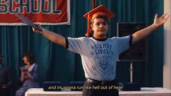 И есть один момент в финале, который, кажется, даже более системообразующий, чем слезливый каминг-аут – точнее, это два удара с разных флангов. Ещё один из четвёрки, Дастин (тот самый «le face»), на выпускном срывает мантию, оголяя принт с рогатым демоном (компашка главных героев, кто не знал, называет себя Hellfire club, что, кстати, стало популярным мерчем) и орёт что-то типа «тупые традиции не нужны». И, самое тонкое, дескать, «есть тёмный хаос [как у монстров], а есть светлый, благодаря которому идёт прогресс и творчество».