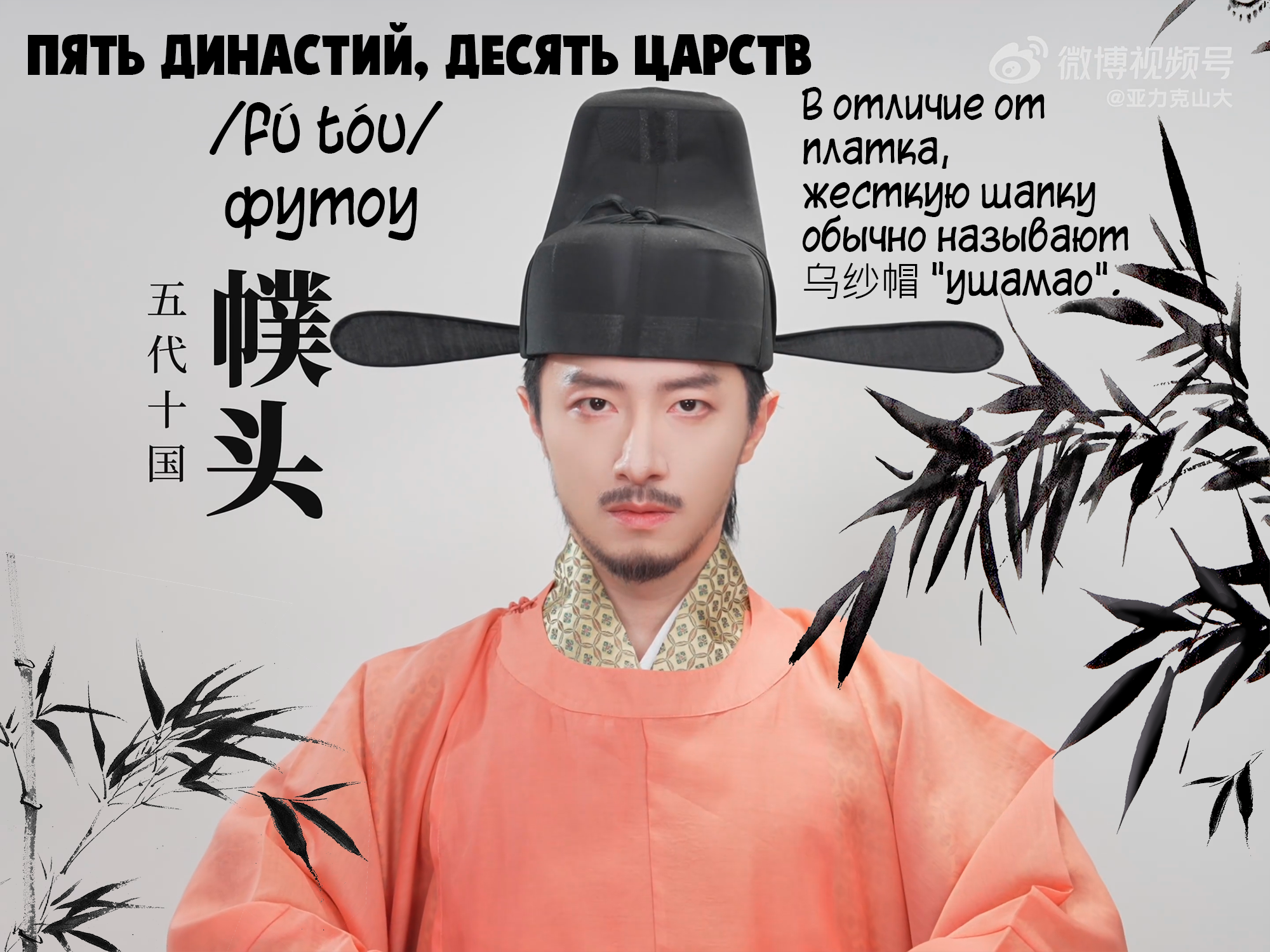 五代十国 Пять династий, Десять царств - 幞头 /fú tóu/ футоу (уточнение: в отличие от платка, жесткую шапку обычно называют 乌纱帽 "ушамао")