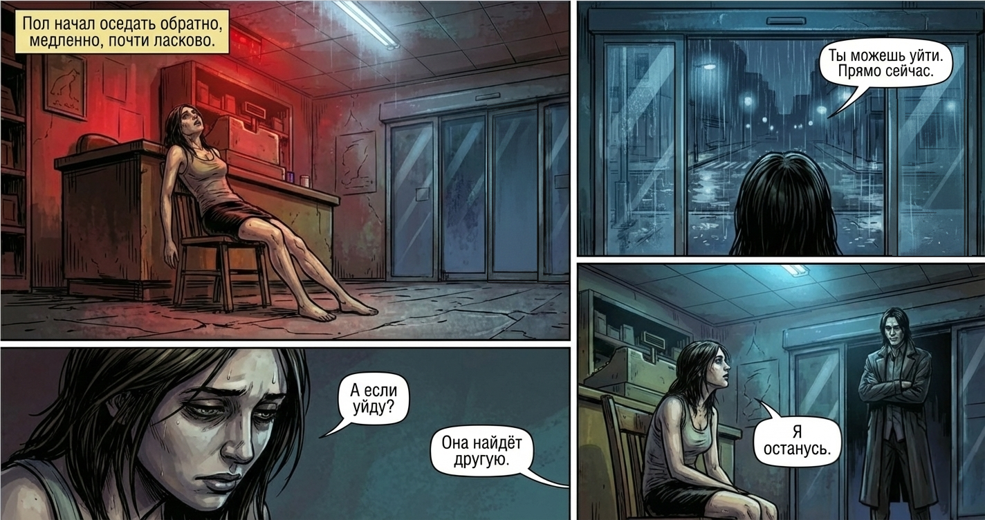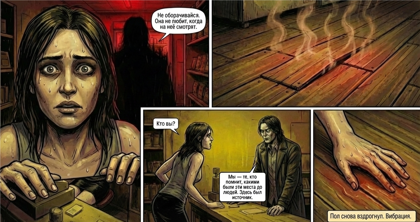 Автор: Владислав АлефСегодняшний комикс по рассказу То, что под полом от Алены Корф. Почитать можно здесь (оригинал) и английская версия. То, что выкладываю комикс сегодня, не связано с ее решением покинуть АТ, поскольку подготовил его заранее. Однако, пользуясь моментом, желаю ей счастья и душевного спокойствия. Пусть у тебя, Алена, все будет хорошо!