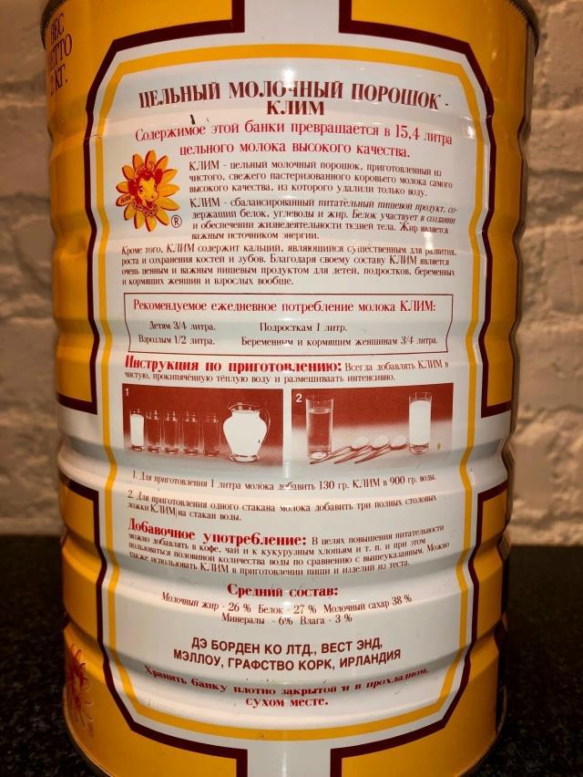 Перед вами банка из-под всемирно известного сухого молока KLIM, произведённого в Ирландии в 1991 году. Именно такие банки раздавали в наших школах в начале 90-х годов, как гуманитарную помощь от Германии. От тех, кого наши еще живые ветераны победили, нам поставляли гуманитарную помощь. И это был мой самый большой стыд при жизни в СССР.