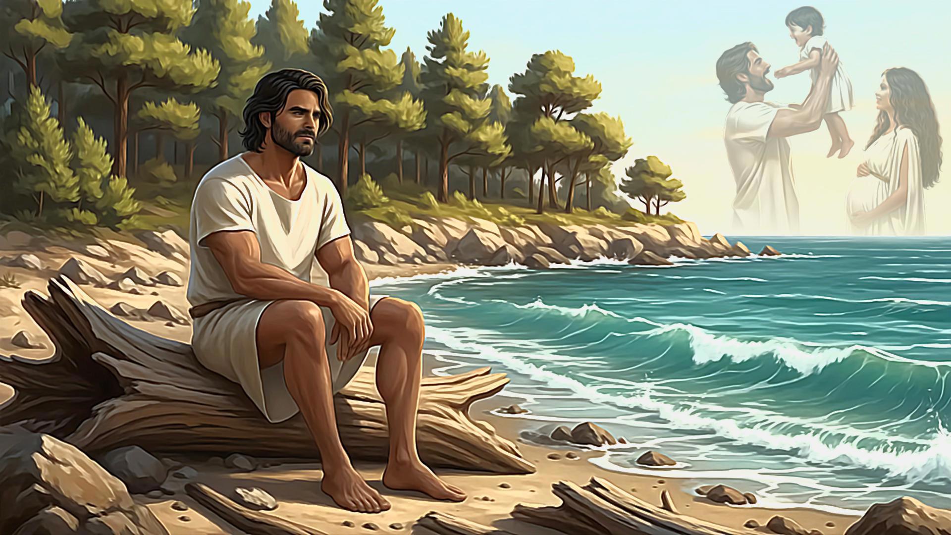Он ещё не знает, что их с женой "заказали" и буквально через несколько минут будут убивать финикийские головорезы. Действие происходит недалеко от древнего Угарита.