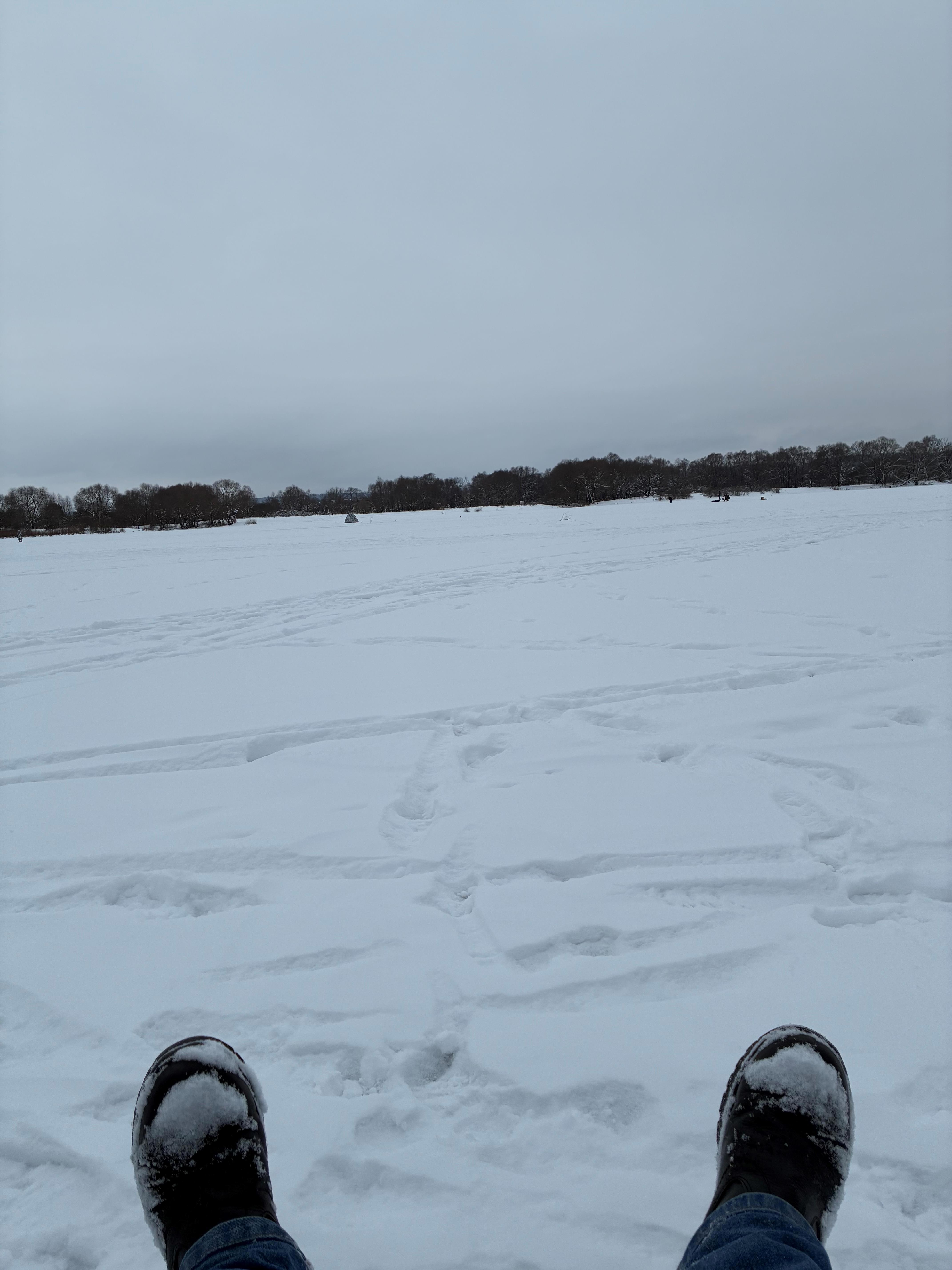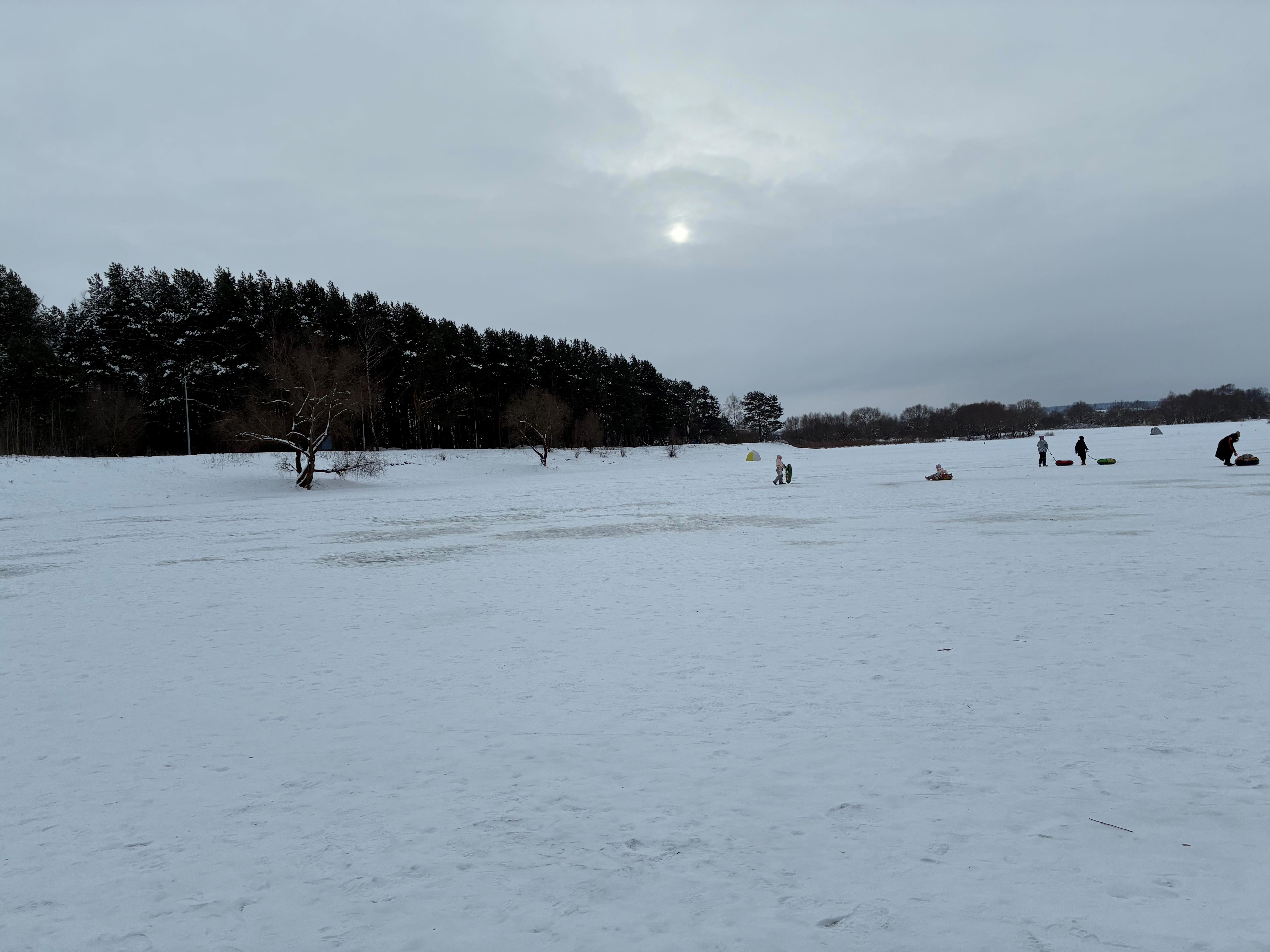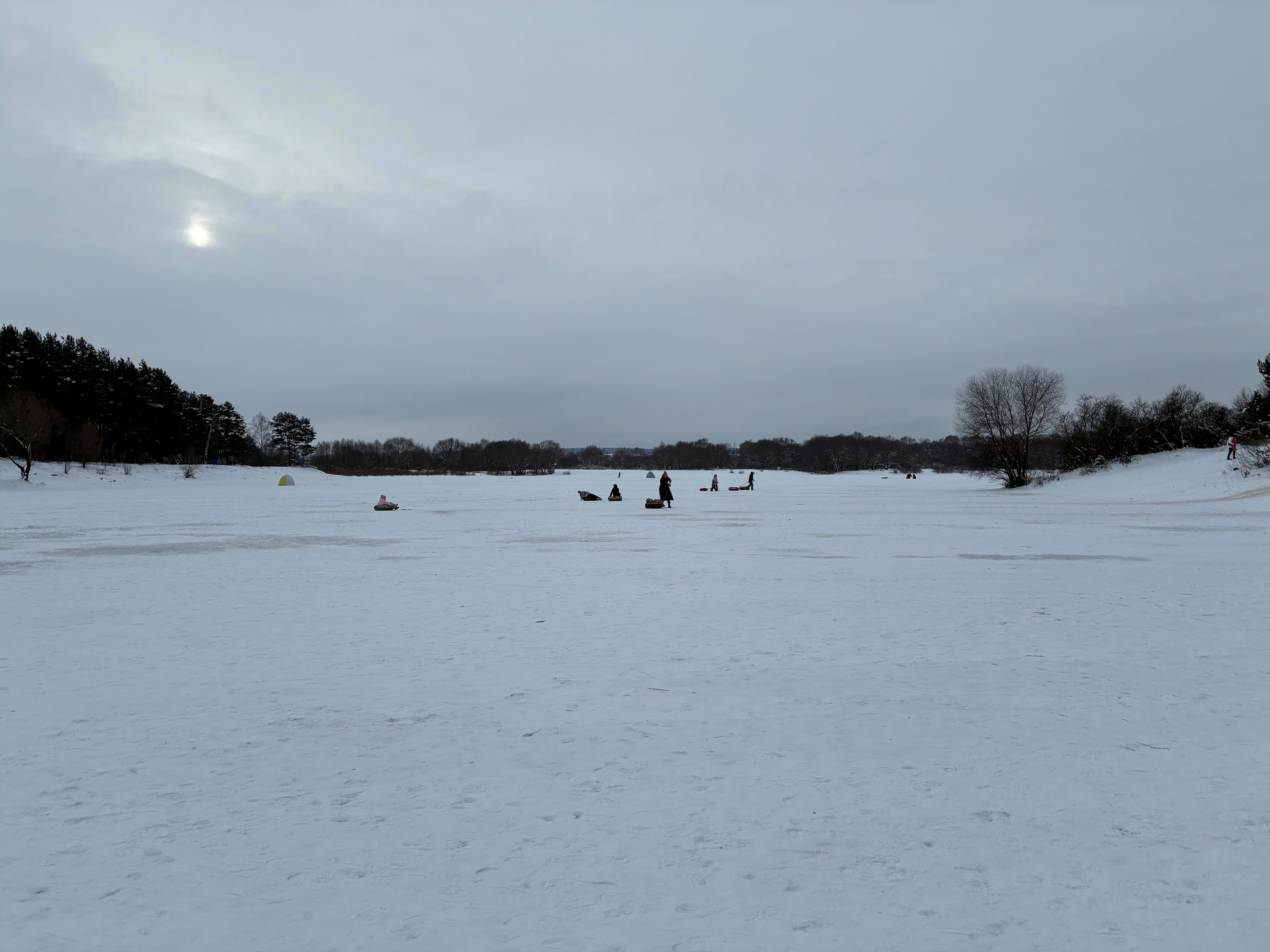 …как видите, люди и рыбу ловят, и на ватрушках катаются, и еще были и лыжники, и ходоки с палками, и даже шашлыки в сторонке жарили.