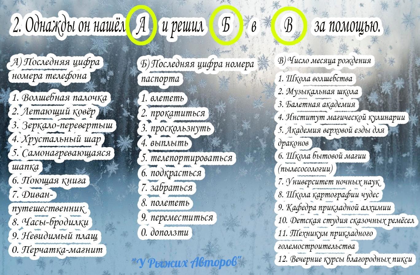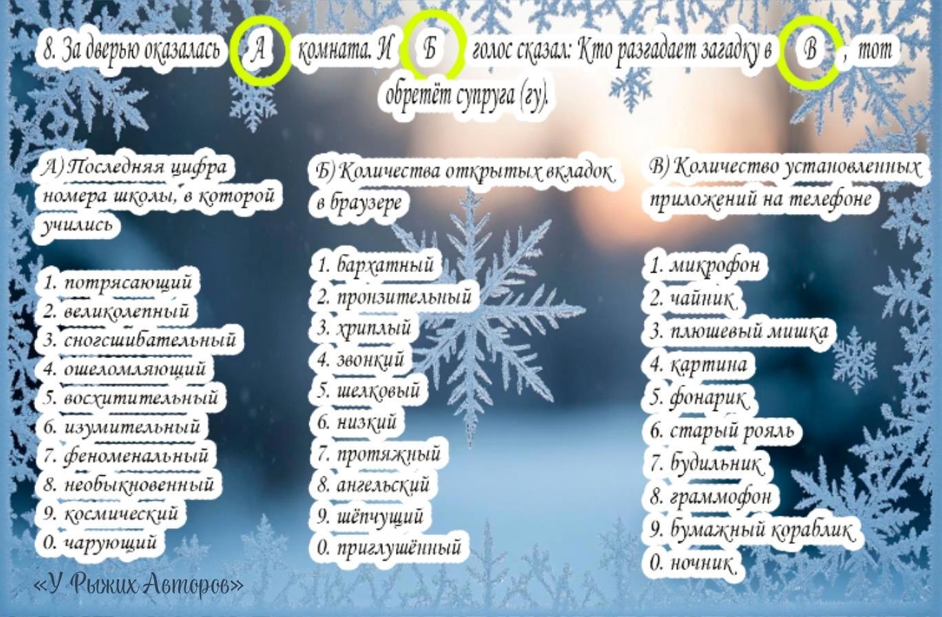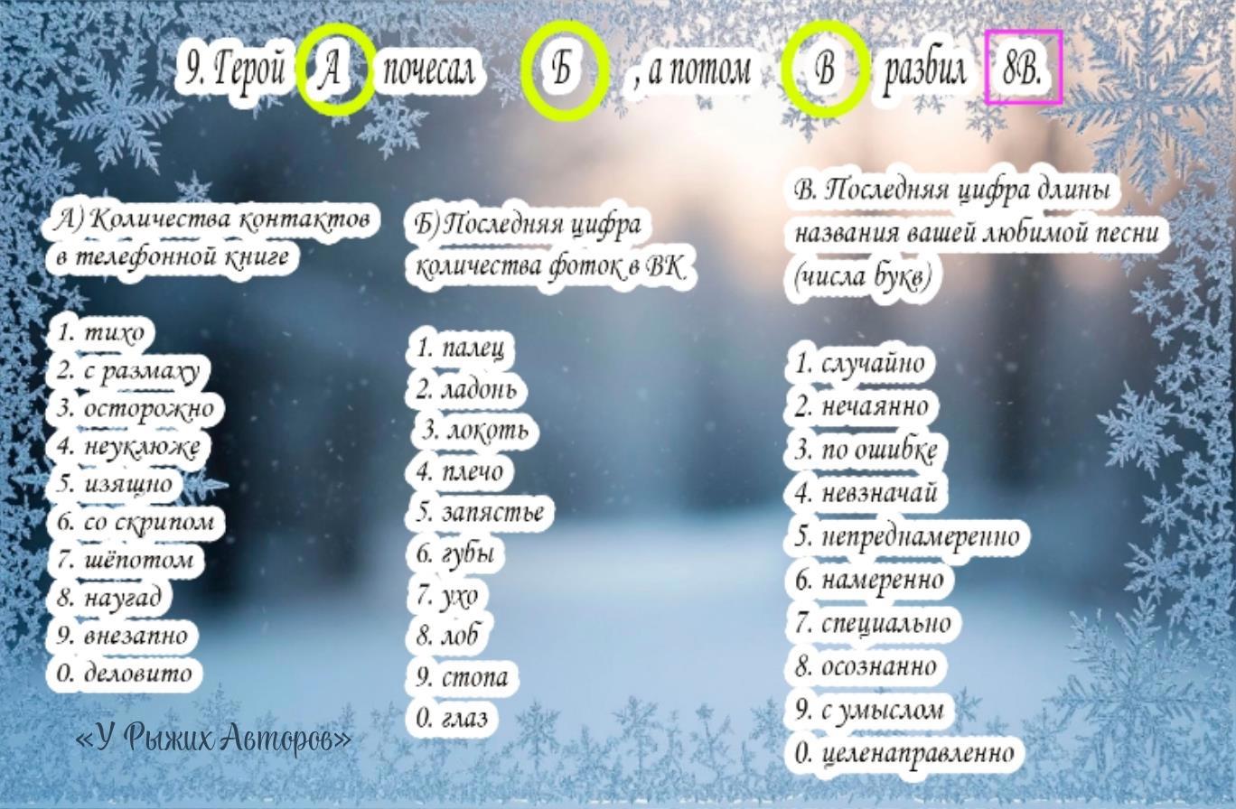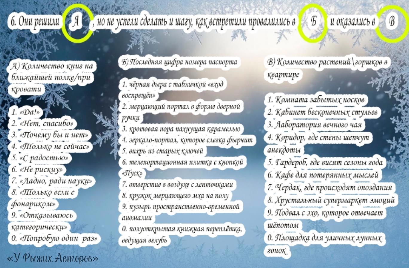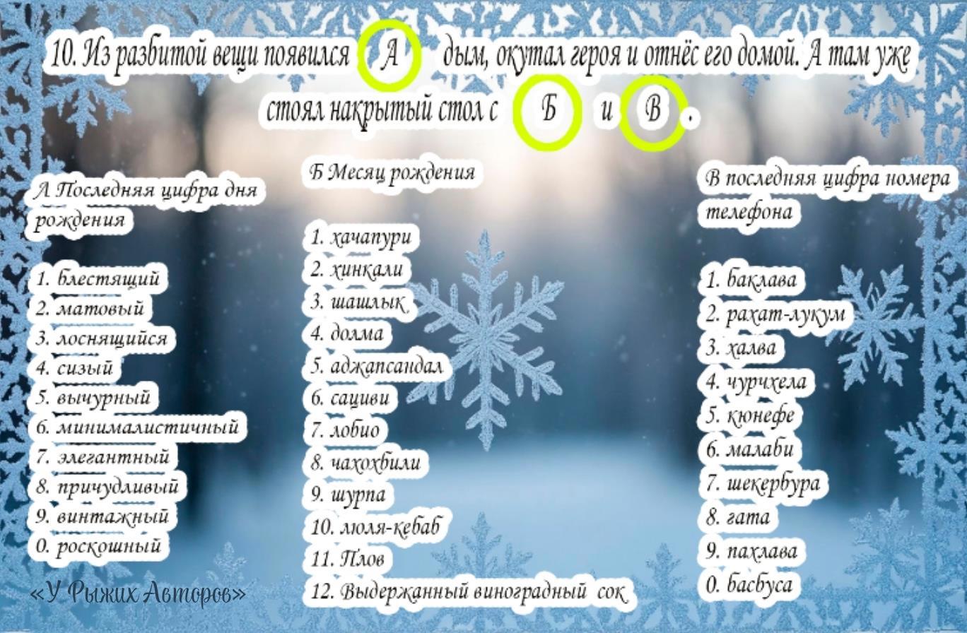 Автор: У Рыжих АвторовСовсем скоро возврат в будни (а у кого-то уже!), но в любой суете можно найти 10 минут, чтобы написать коротенькую весёлую новогоднюю историю, ну или её каркас, похулиганить, поулыбаться...