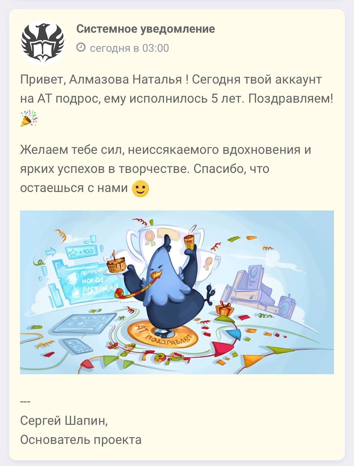 Ну скажу сразу, пришла на АТ я пять лет назад как читатель, и три года из этих пяти им и оставалась, не выпендривалась. Книжки, собсна, читала, наградки кидала. Была приличным, как ни взгляни, человеком. А параллельно стихи писала, но так, в местечковых газетах и каких-то там тематических сборниках только что и печаталась, куды брали задарма и грошей не требовали. В целом, с рифмой у меня недурно оно выходило, дружили мы.