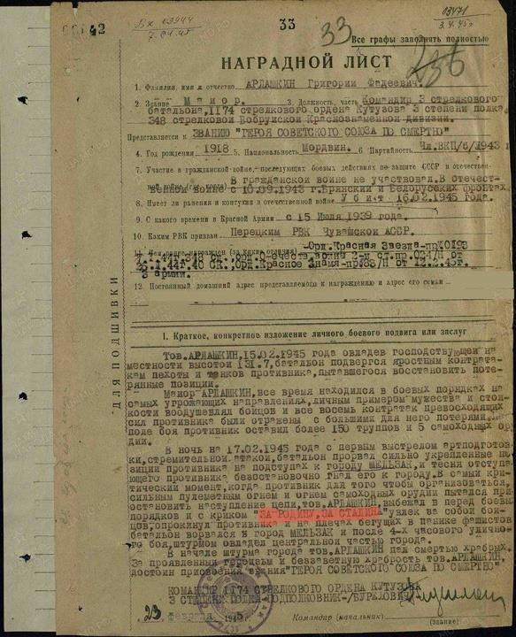 Из наградного листа Алексея Маркеловича Сергеева.