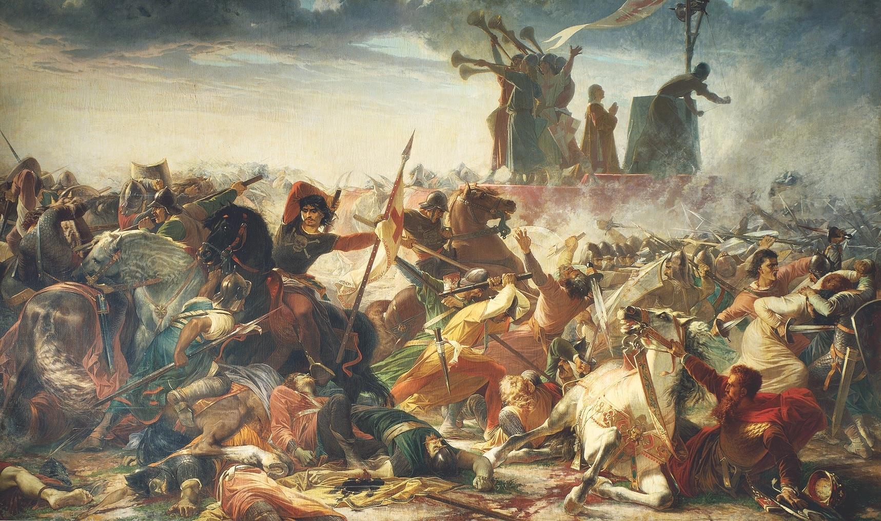 В мае 1176 года в битве при Леньяно впервые в истории пехота разбила тяжёлую рыцарскую конницу. Да не какую-нибудь там, а самую лучшую — германскую. Пехотинцы встретили рыцарей Барбароссы сплочённой стеной, ощетинившись копьями. В этих же рядах стояли новгородцы. Никто не дрогнул, не испугался, не убежал, и рыцари не смогли прорвать строй.