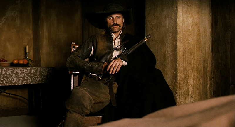 - Актерская игра Вигго: все мы любим Арагорна, но скажем прямо, это не самая его сильная драматическая роль (здесь давайте напишем списочек его более разрывных ролей:____________________). В роли Алатристе он не выдаёт драматизма Скорсезе или эмоций Дэниела Дей-Льюиса, он не играет гипертрофированными гримасами, но жестами, взглядом, паузами в движениях и позами. Возможности оценить фильм в оригинале у меня не было (испанский всё-таки), так что про игру голосом не могу ничего поведать объективного. В общем, если вам нравится честное и спокойное исполнение без претензий на Пальмовую Ветвь с красотой в простоте, добавьте в список "что посмотреть".