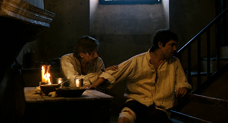 - Человеческие отношения: времена были непростые, связи людских судеб – ещё более запутанные. Они построены на выгоде, взаимной или односторонней, альянсы – тут, заговоры – там. Но посреди выживания в бушующем море интриг и хитросплетений, зритель видит непоколебимые моральные принципы наёмника, который так-то продает свою шпагу за звонкие дублоны. Только не всё можно купить. Он честен своей разбойничьей честностью. Он верен своим: команде, названному сыну, женщине. А теперь выкинули из головы образ красивого лирического персонажа и представили мужчину, который так или иначе вынужден поступаться порой своими чувствами ради исполнения приказа/заказа\долга. Это не серая мораль – это простая жизнь. Так-так, а ещё тут один из изящнейших примеров старой как мир традиции упоминания женщины, подарившей жизнь сопернику, в контексте вы сами знаете чего. Ну, оооочень элегантно вышло. Привет любителям PvP.