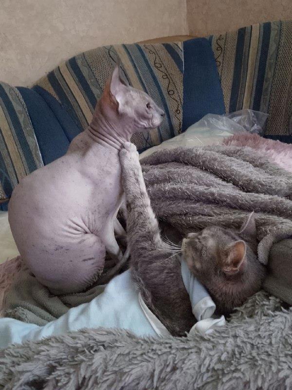 Одним порадую - бегает и прыгает, как будто и не болела вовсе. Стала бесконечно говорливая и до безумия ласковая, менее пофигистичная, выразимся так. Ты ей одно говоришь, а она только: "Мяу!" Шов лизать пыталась, попону посредством другой кошки развязывала, но, спасибо Боже, я пока домосед и две недели заживания разреза мы пережили. Сегодня снимаем шов, и я освобождаюсь от дел наполовину. К тому же многие скоро выйдут на работу/подработку, так что период совпал как никогда кстати.