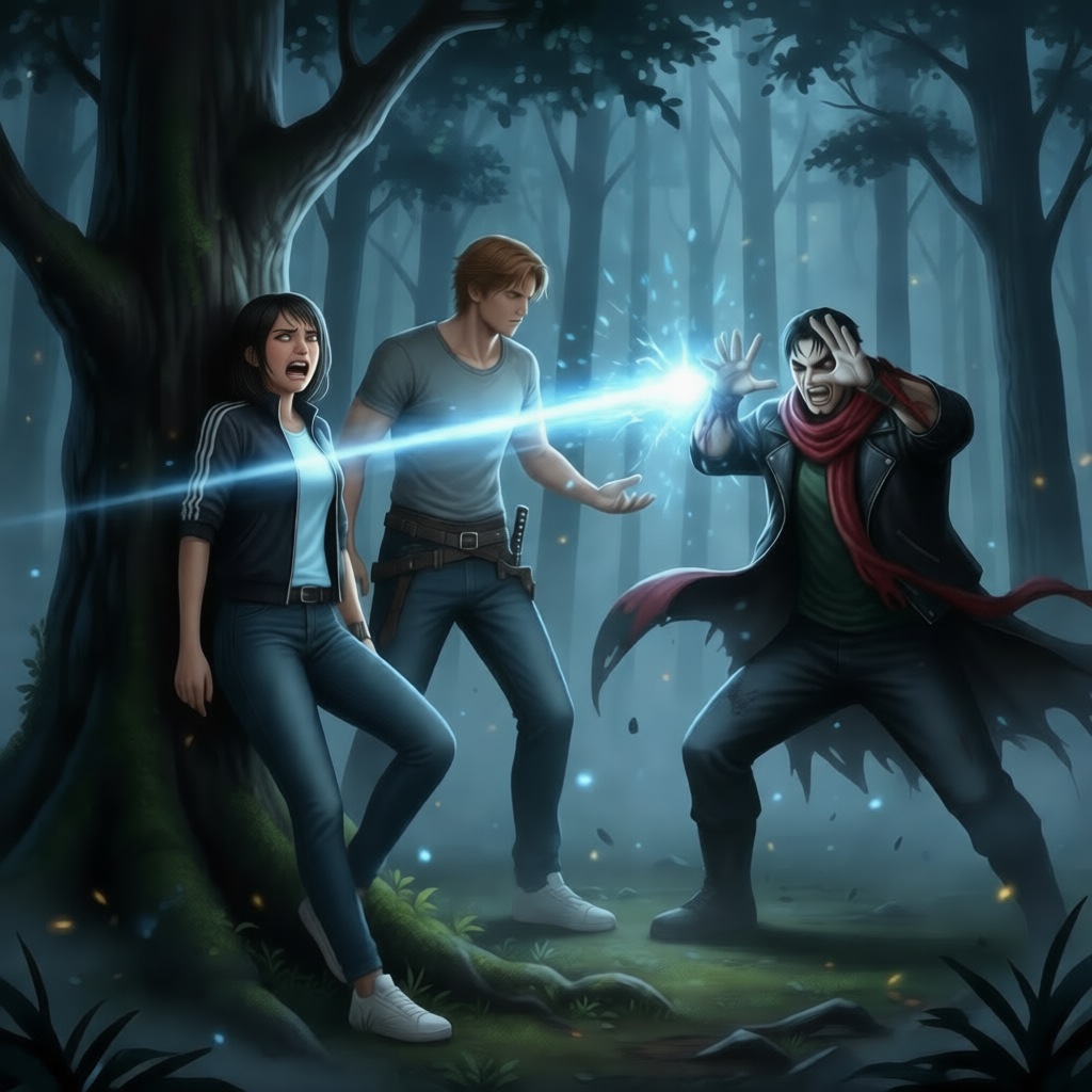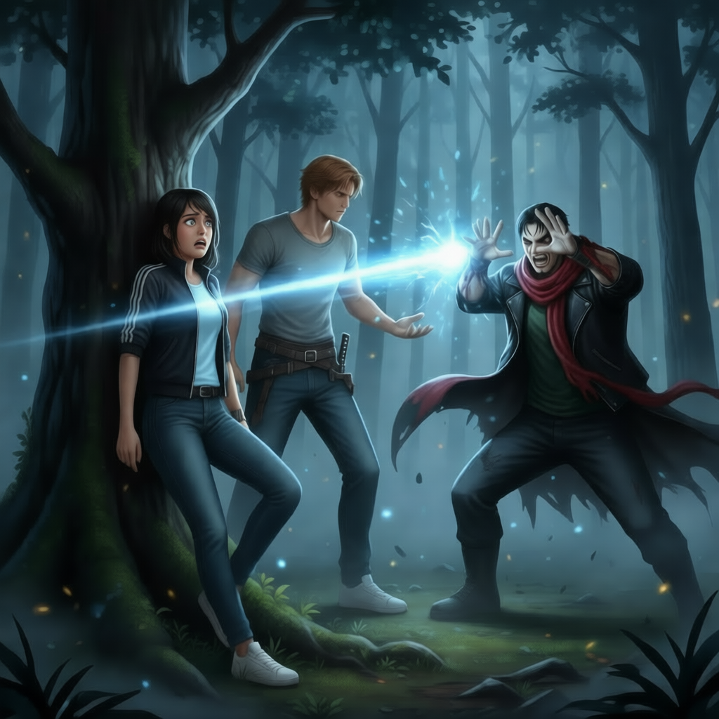 Автор: Наталья БыстряковаПоделюсь же с Вами небольшой историей, когда я училась создавать арты с несколькими персонажами в одном кадре в нейросети Qwen. Помните ту самую сцену в видеоклипе по роману "Надежда измерений", где Джейкоб прогоняет магией света Тёмного Волка и спасает Умари? Так вот с чего начиналось...